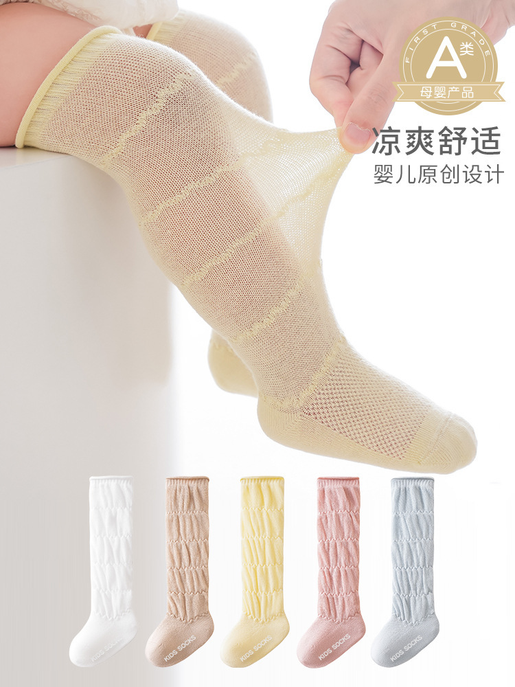여름용 롤업형 아동용 긴 모기 방지 양말, 초박형 아기 메쉬 양말, 미끄럼 방지 점착 신생아 양말스토어 가기