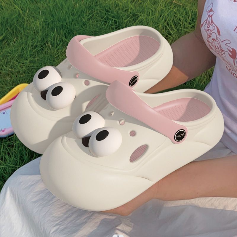귀여운 큰 눈 여성용 멋진 슬리퍼 여성용 여름 미끄럼 방지 올 매치 편안한 젖은 물 바오터 동굴 신발스토어 가기