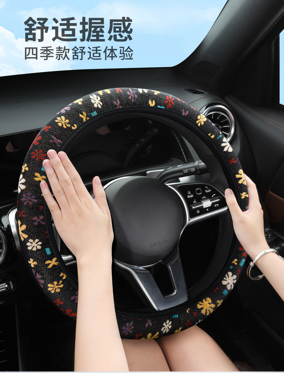 사계절 일반 린넨 자동차 스티어링 휠 커버 내부 링 탄성 아이스 실크 부드러운 천 보호 커버 커버 커버 국경 간 대외 무역스토어 가기