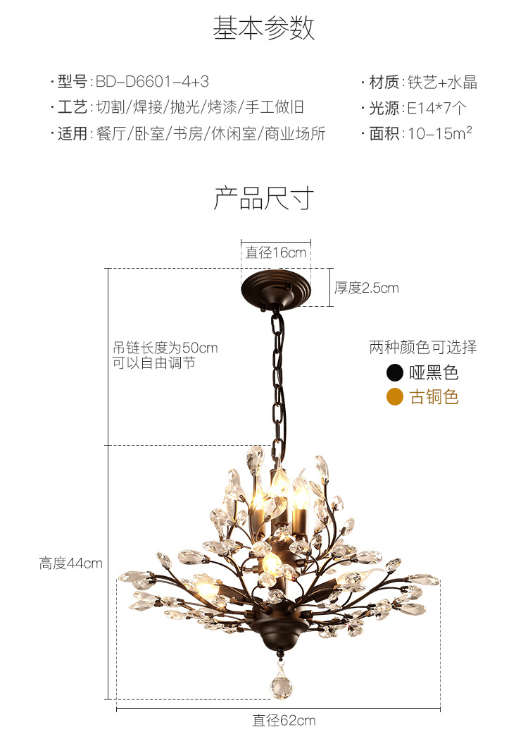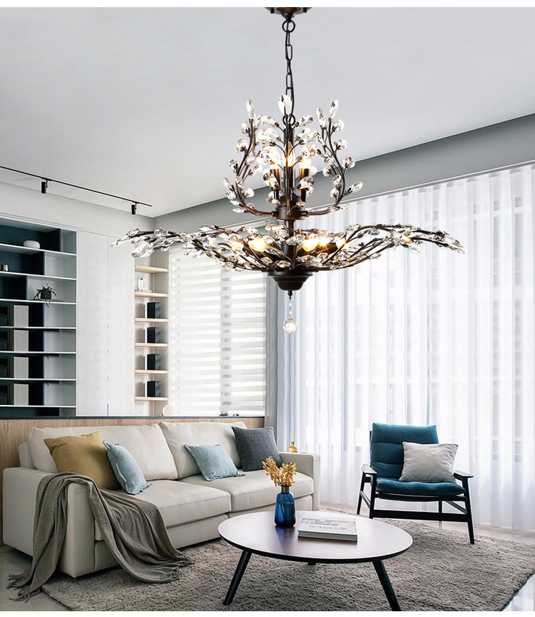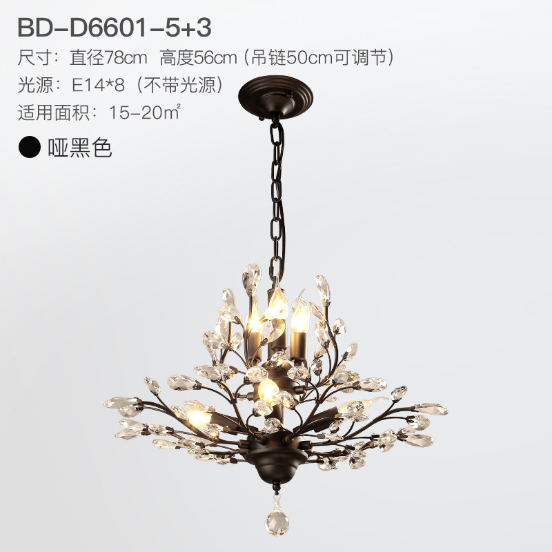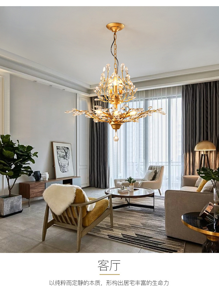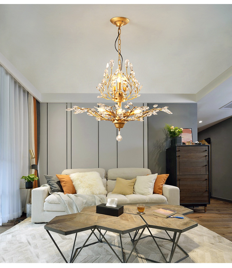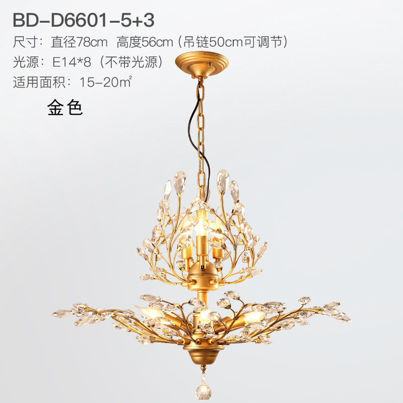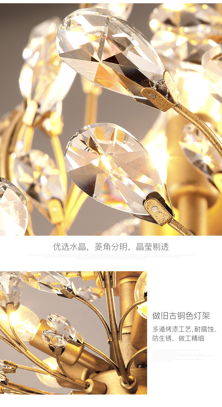 미국 복고풍 크리스탈 캔들 샹들리에 거실 식당 식당 조명 2024 새로운 계단 조명