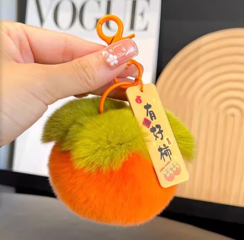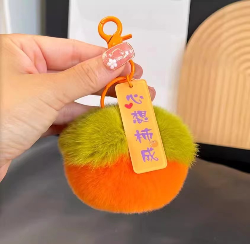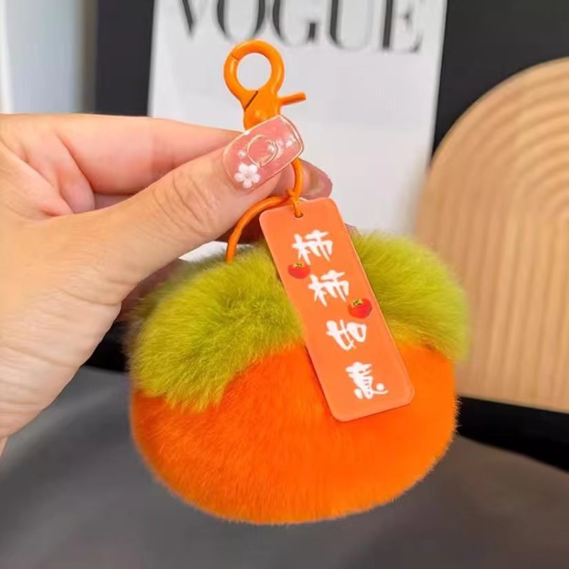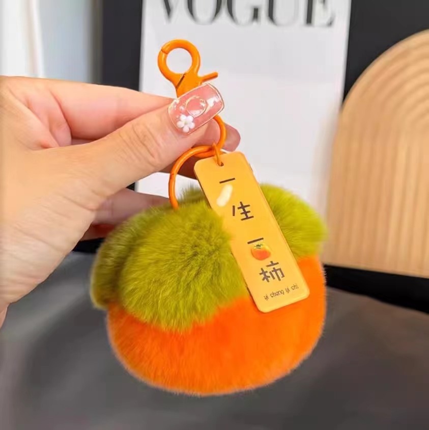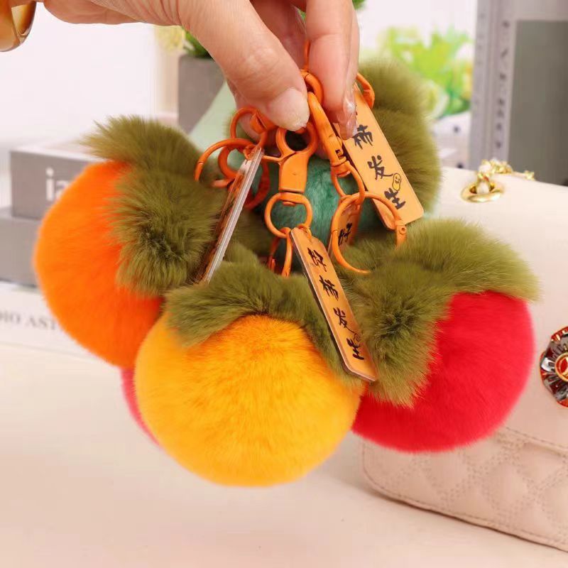 토끼털 행운의 부적 작은 감 모양 자동차 키홀더 귀여운 플러시 가방 장식 도매 귀여운 디자인스토어 가기