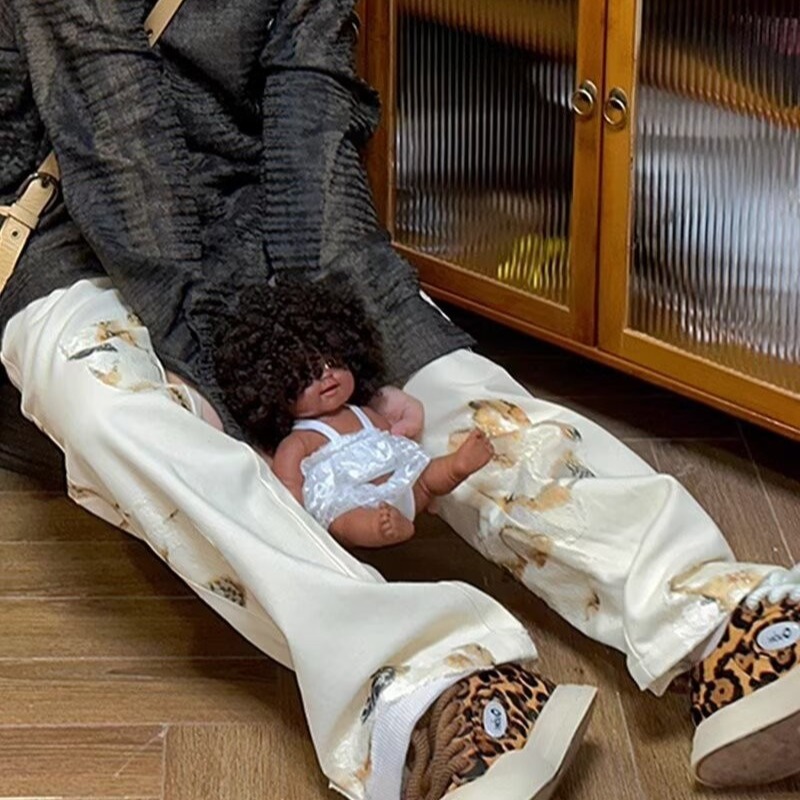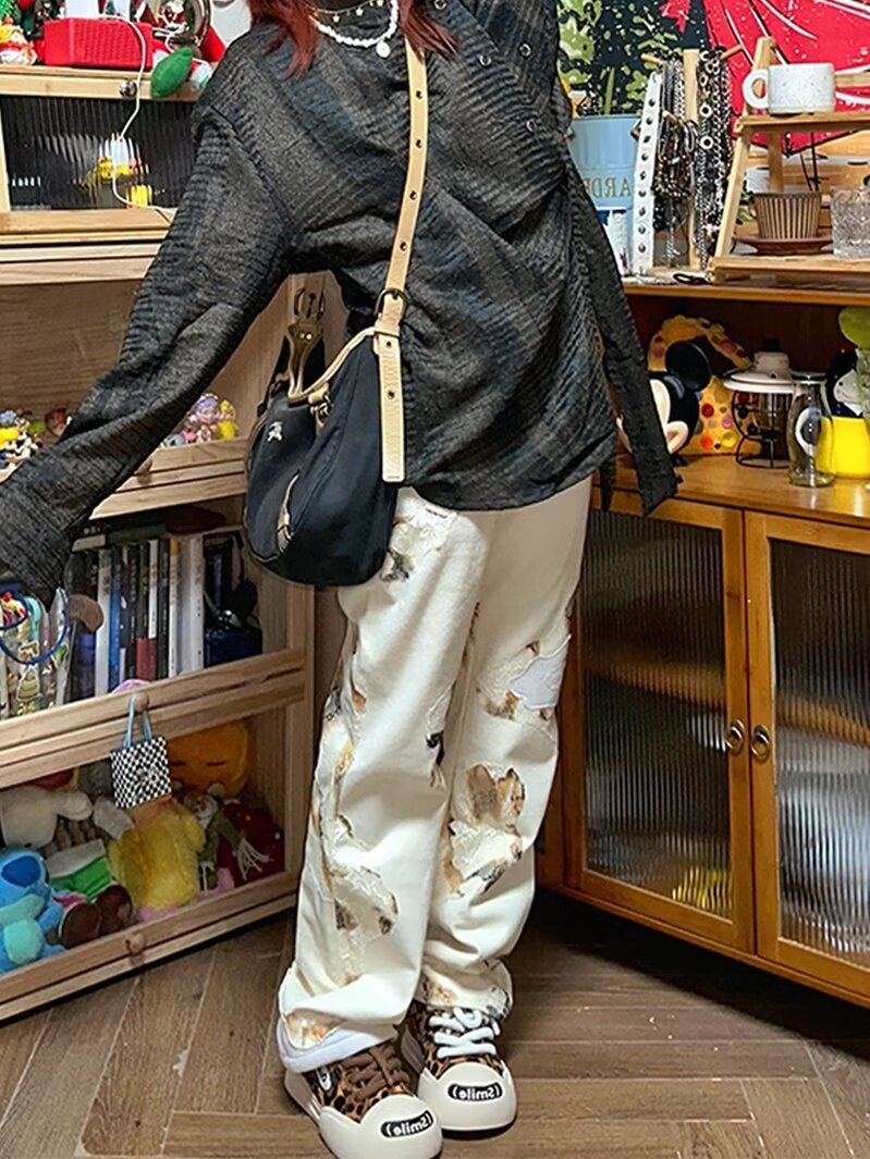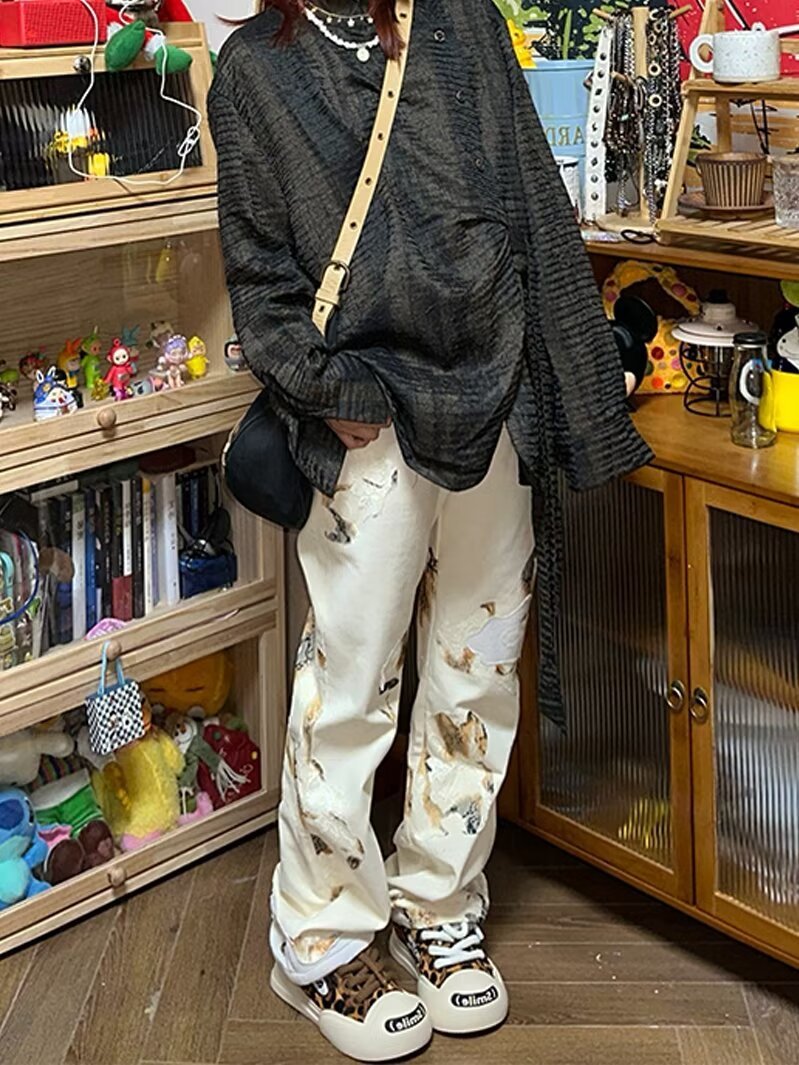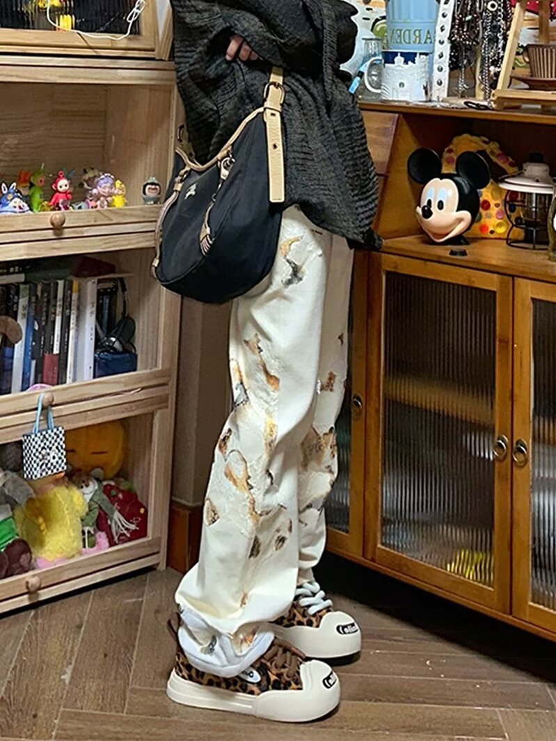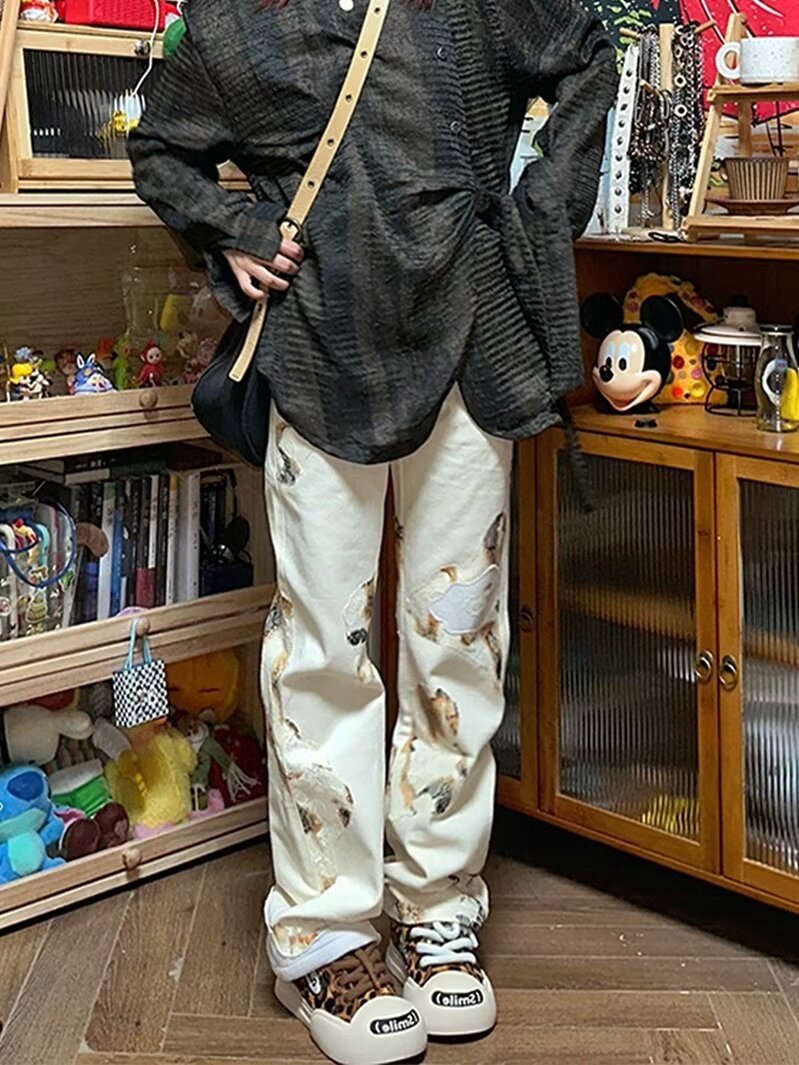 AliExpress 아메리칸 레트로 그래피티 디자인 청바지 스트레이트 루즈 슬리밍 펜던트 와이드 레그 캐주얼 바지