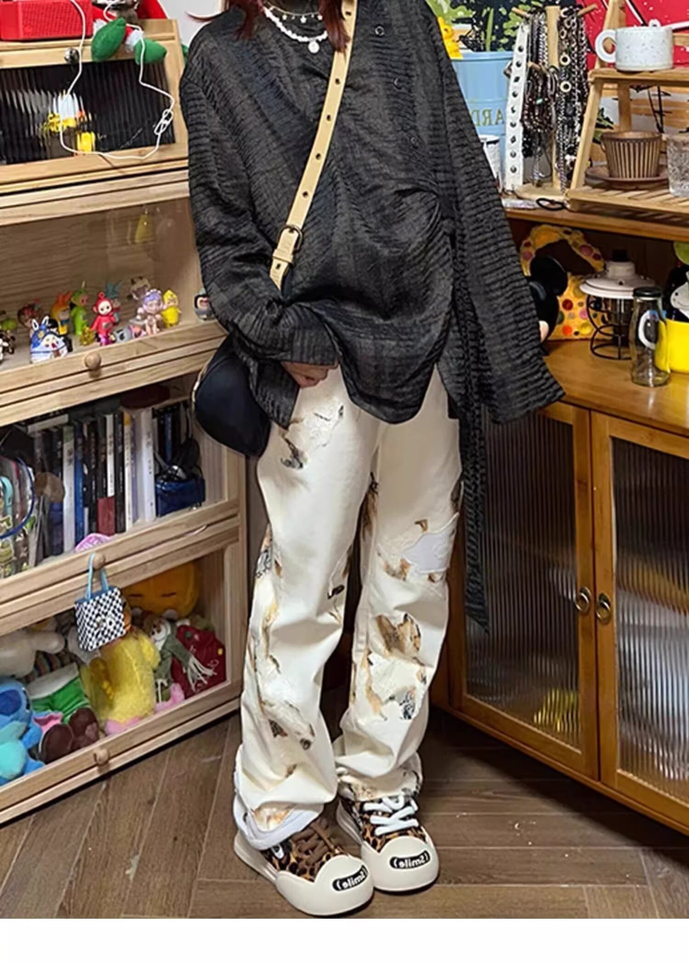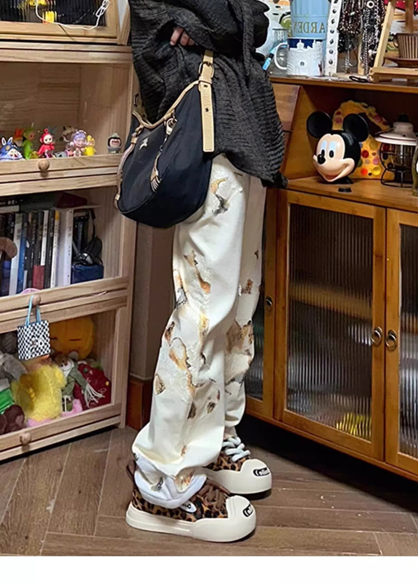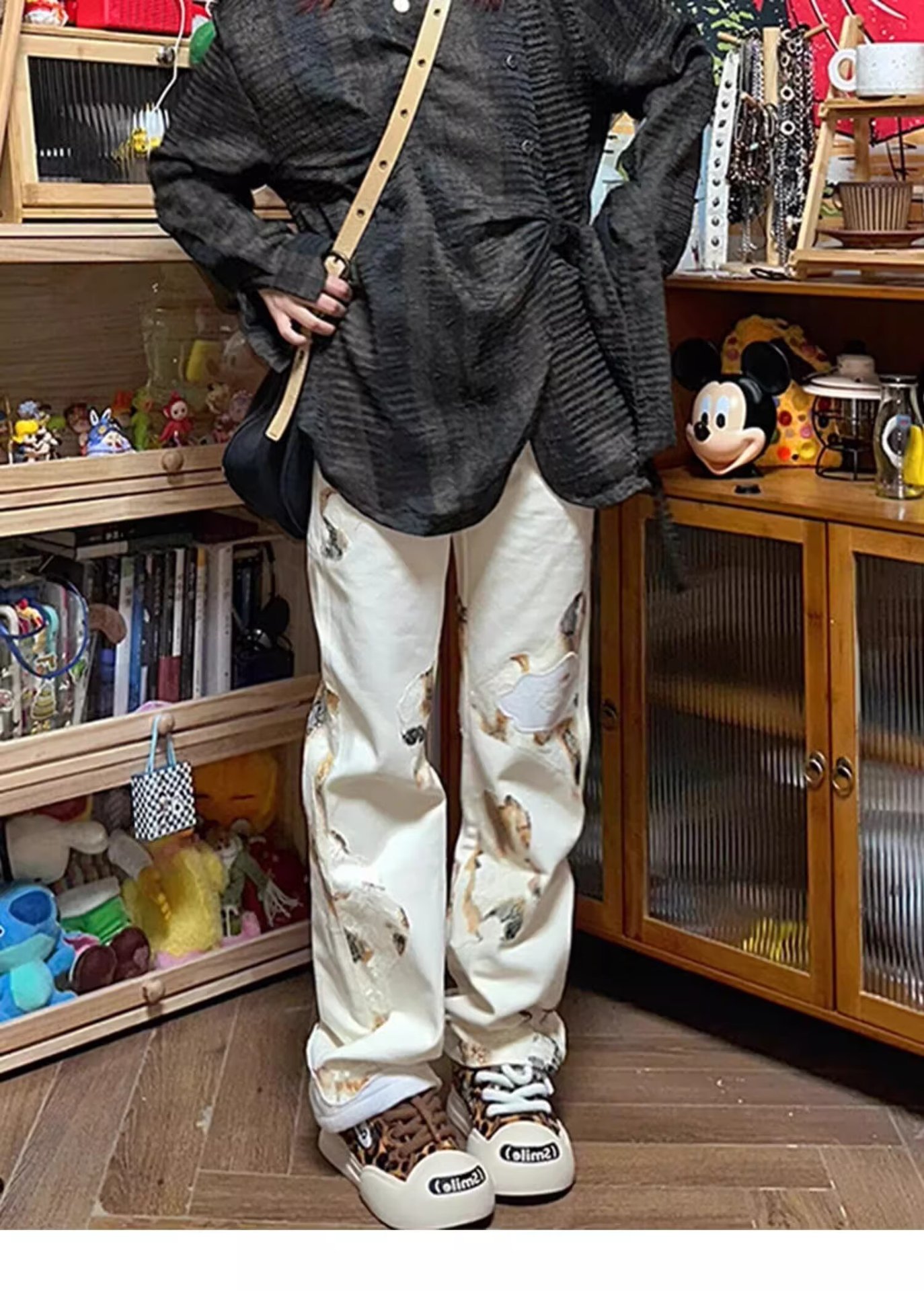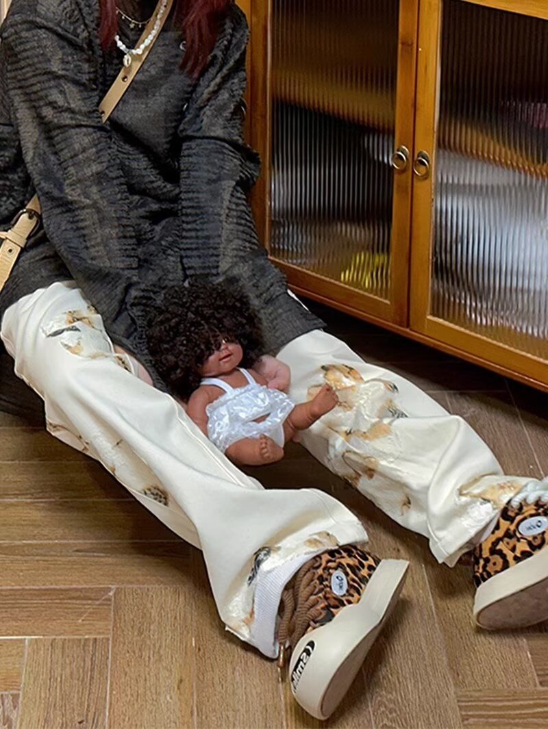 AliExpress 아메리칸 레트로 그래피티 디자인 청바지 스트레이트 루즈 슬리밍 펜던트 와이드 레그 캐주얼 바지