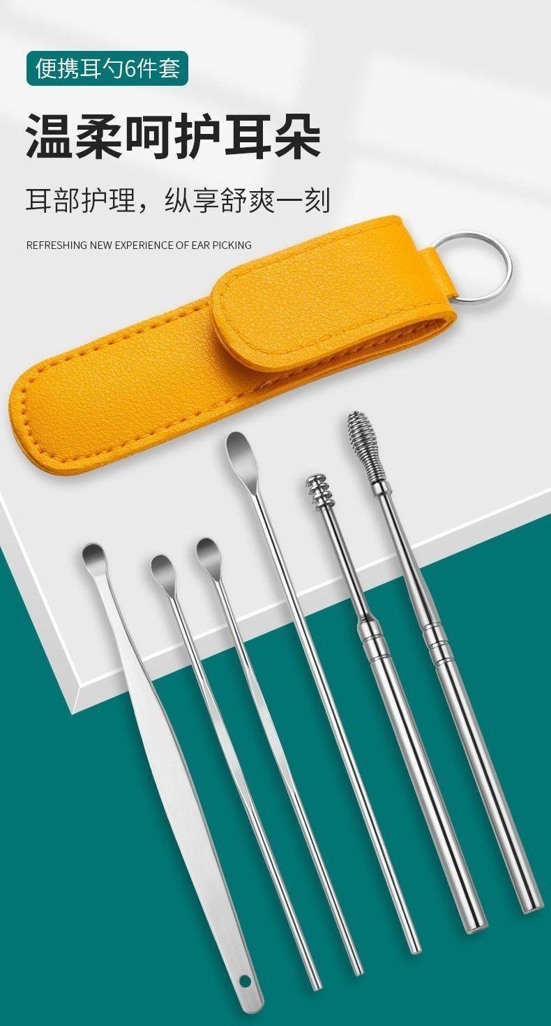 귀 파는 숟가락 6 조각 세트 귀 파는 귀지 도구 어린이 성인 귀 파는 숟가락 스테인리스 유물스토어 가기