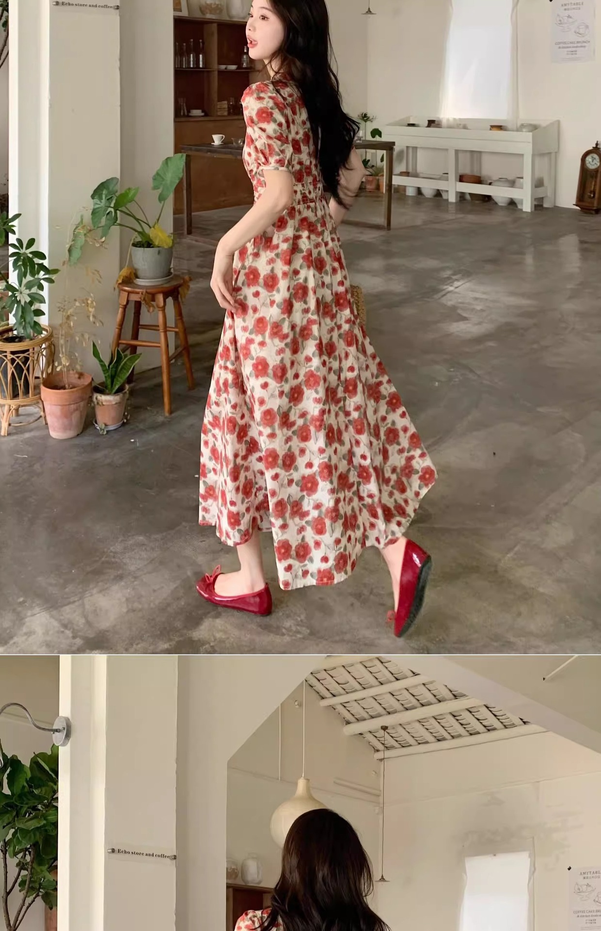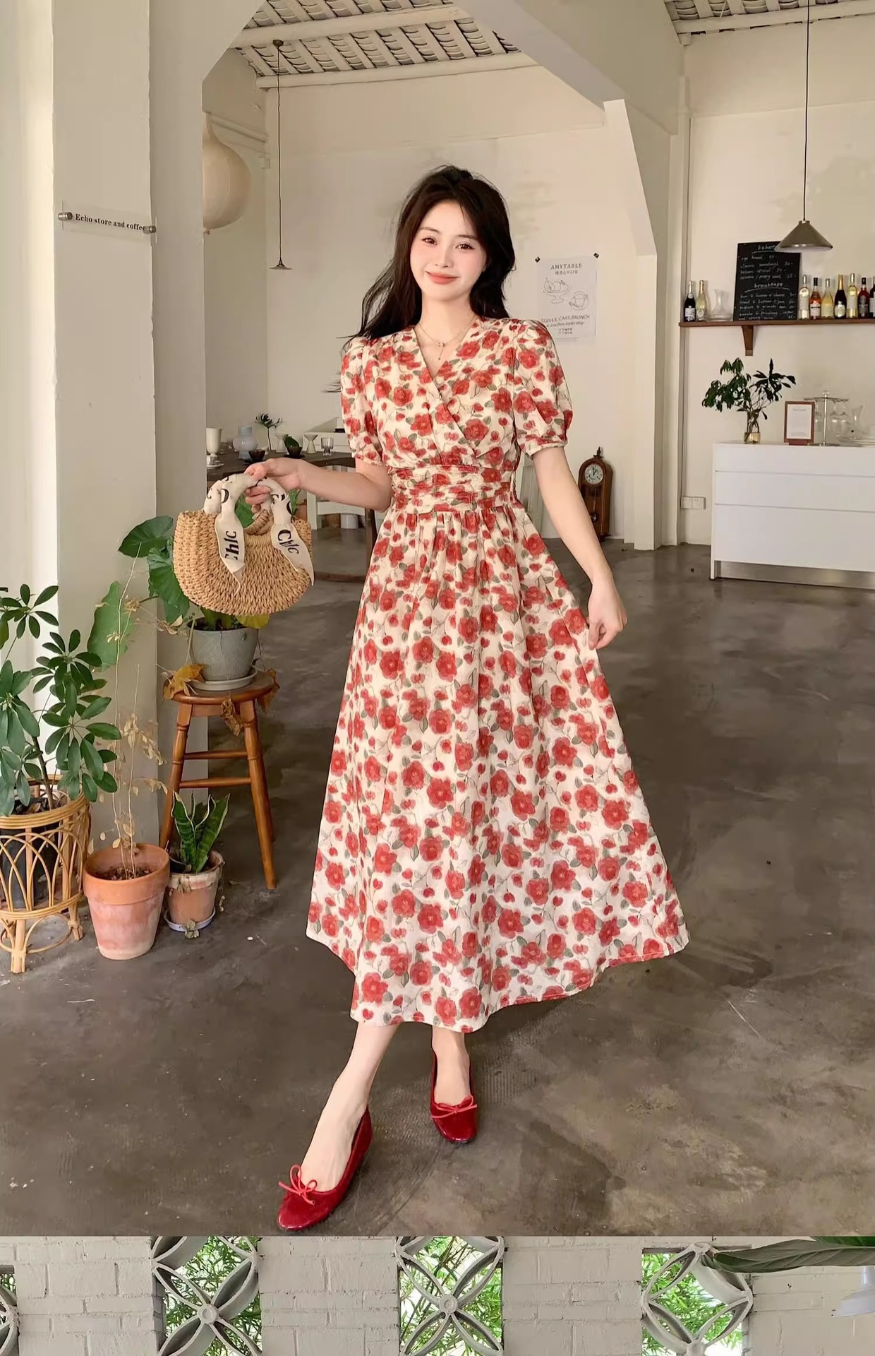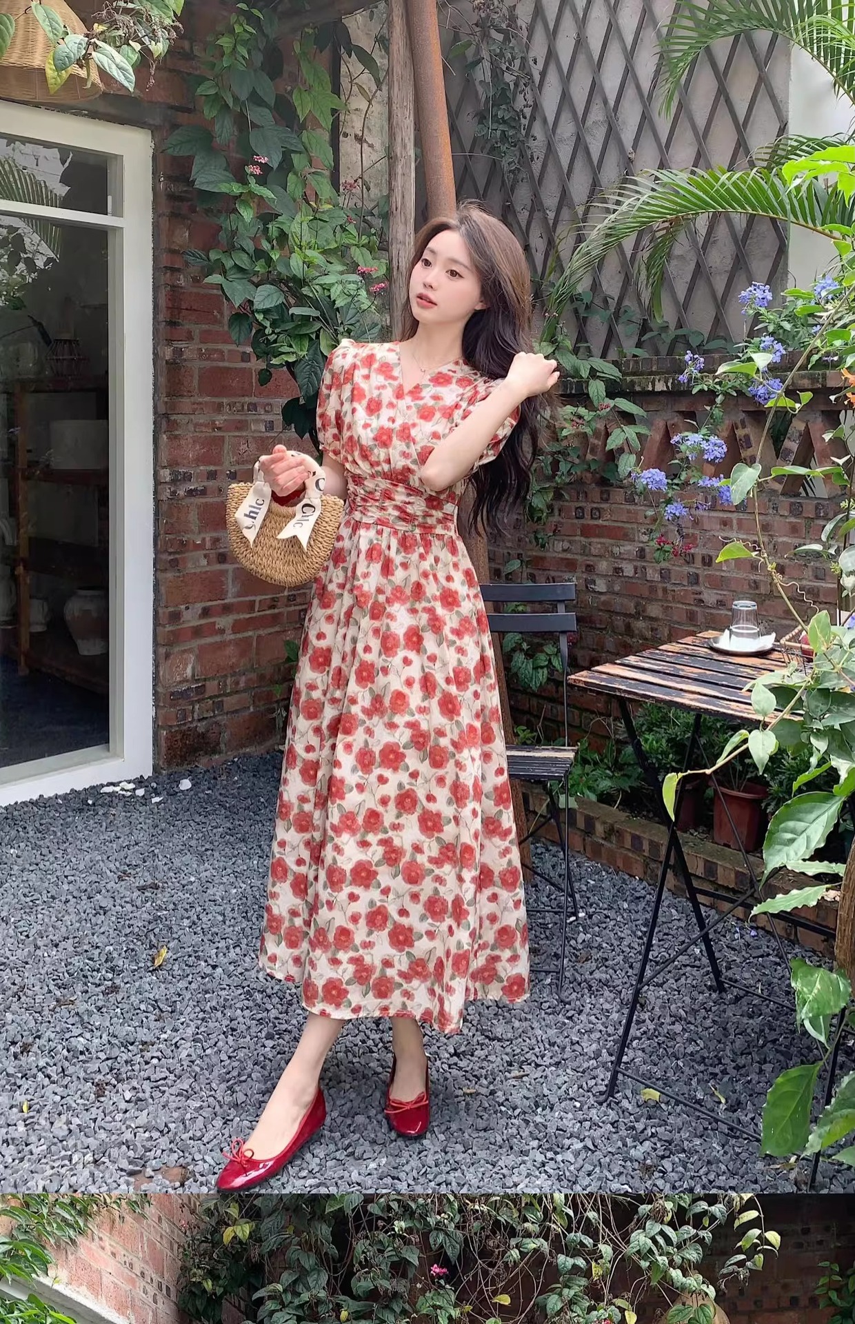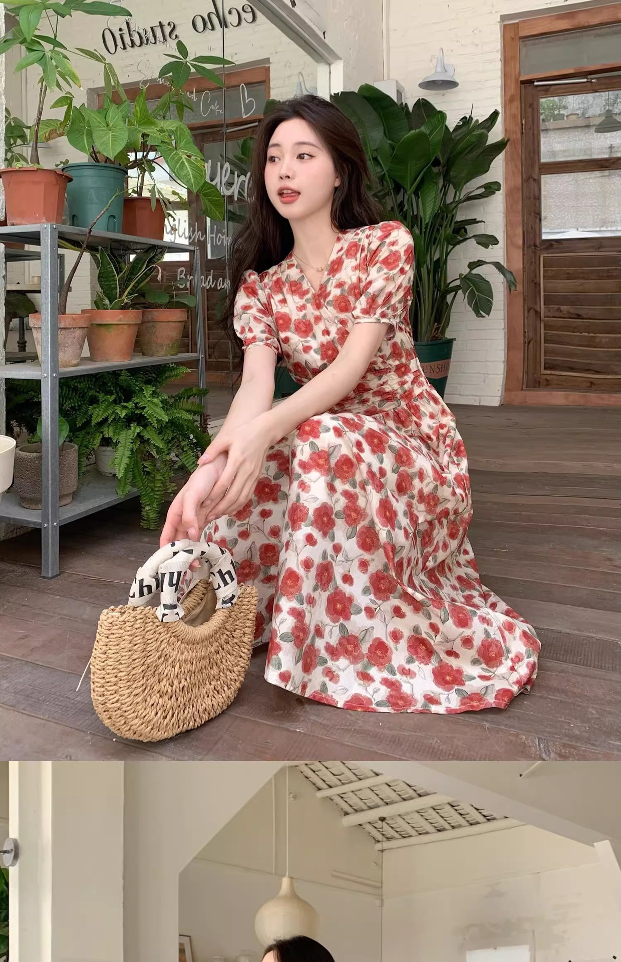 [독창적 인 솜씨] 플러스 사이즈 차 브레이크 프랑스 인쇄 원피스 여성 여름 통통녀 새로운 여신 스타일 하이 엔드 원피스스토어 가기