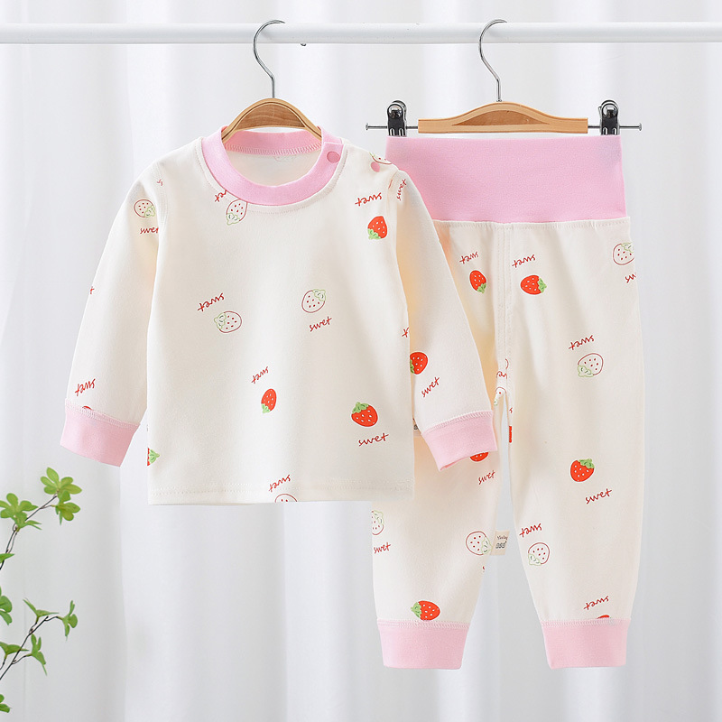 아기의 가을 옷 가을 바지 순수한 면 높은 허리 배꼽 보호 세트 어깨 버클 소년 소녀를위한 어린이 속옷 봄과 가을 사계절 잠옷