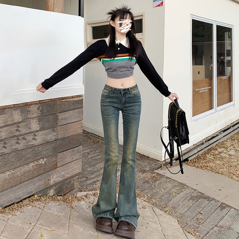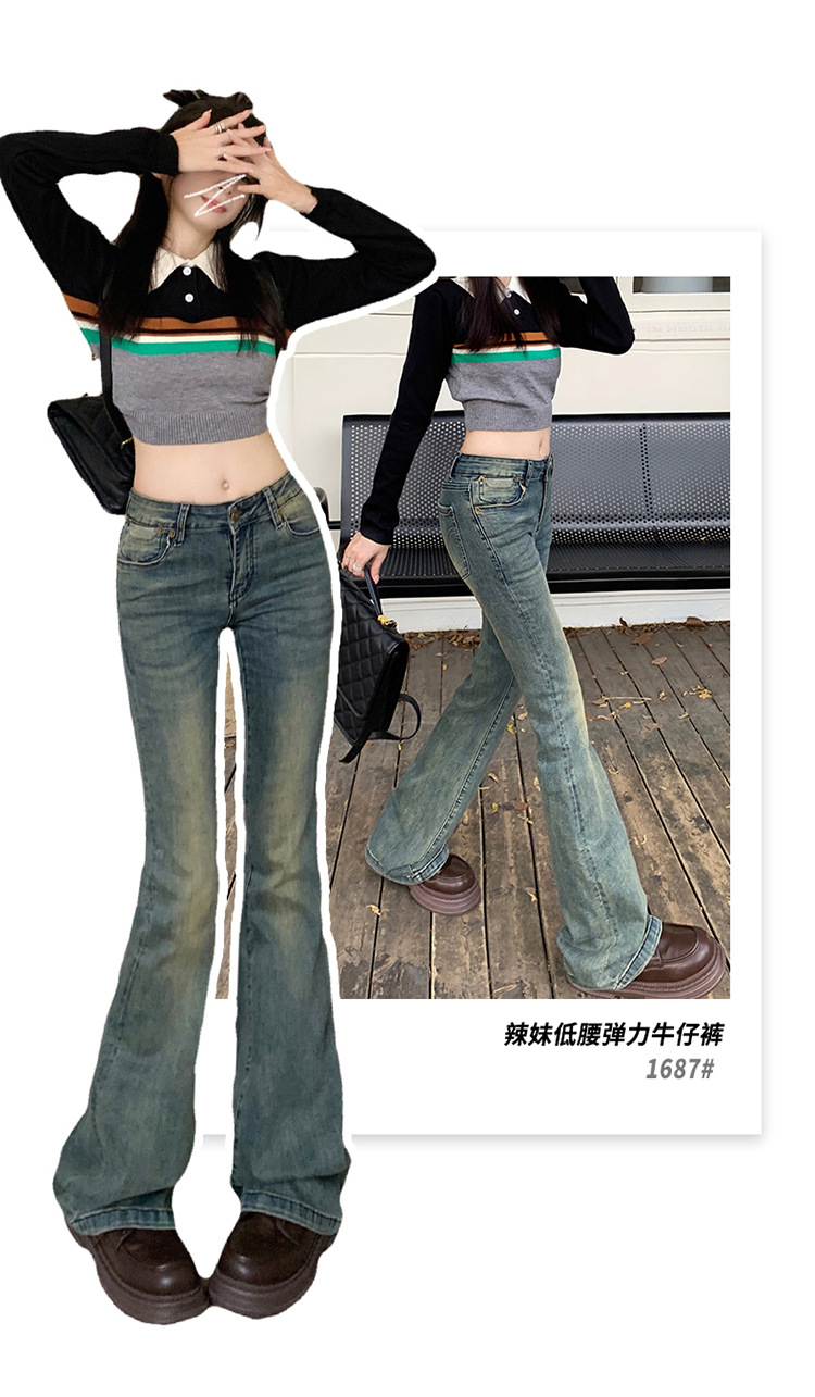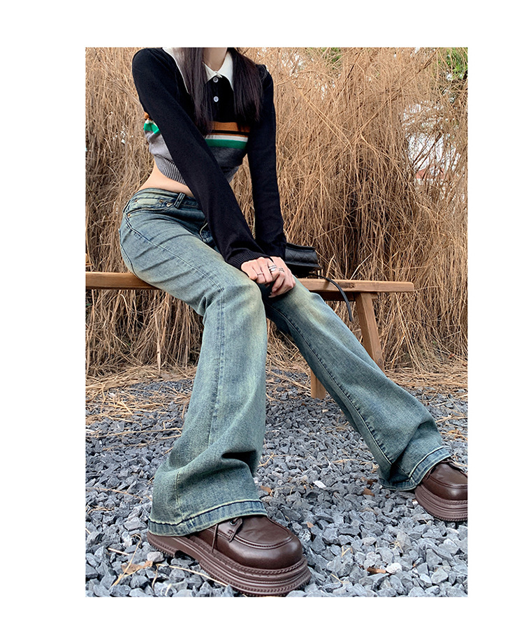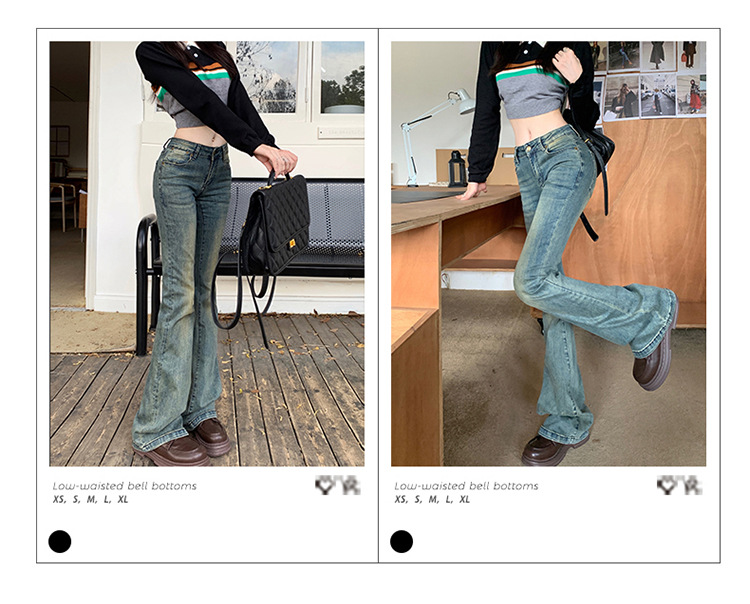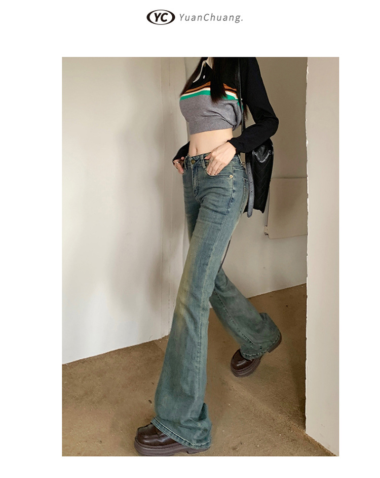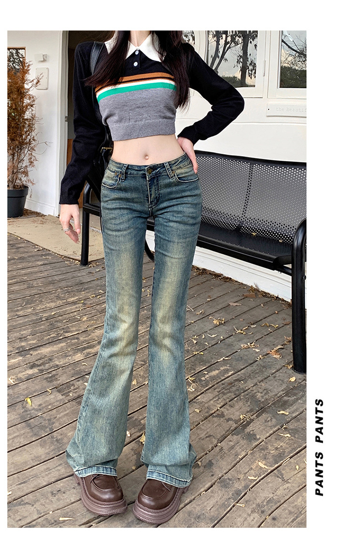 미국 레트로 마이크로 플레어 청바지 여성의 2024 새로운 낮은 허리 슬리밍 와이드 레그 올 매치 스트레치 말굽 바지스토어 가기