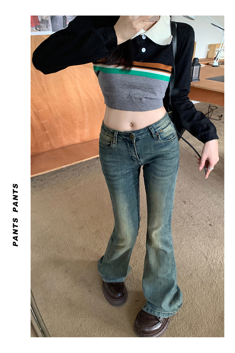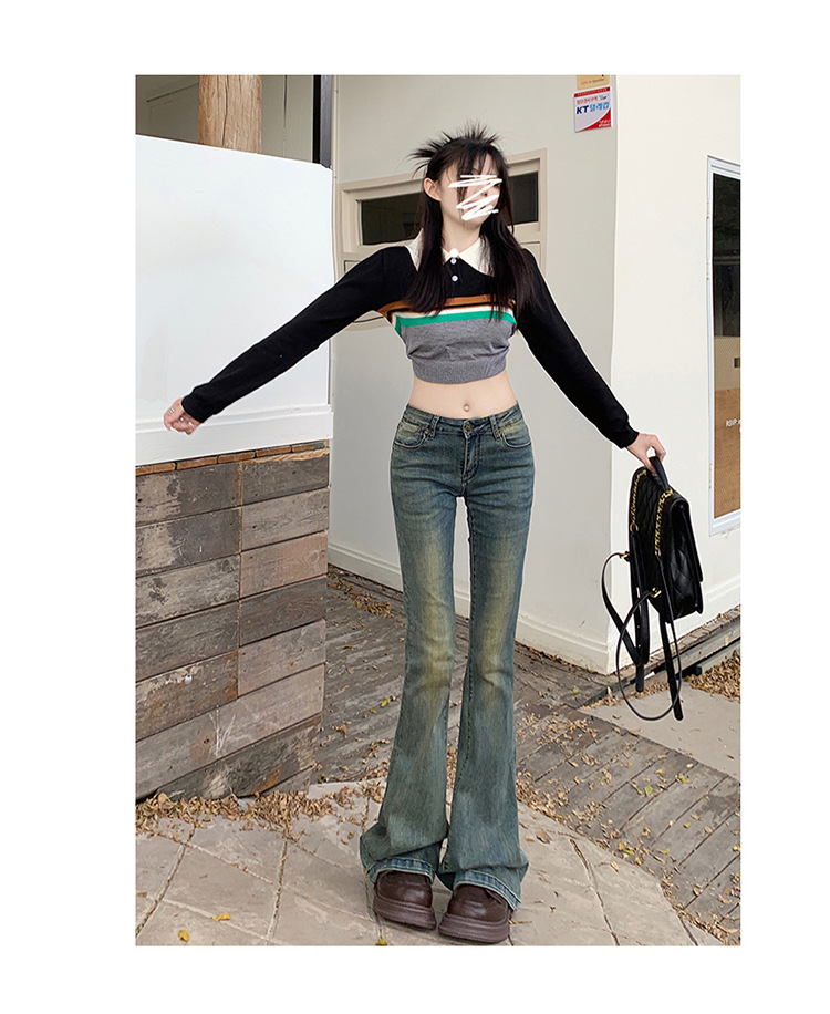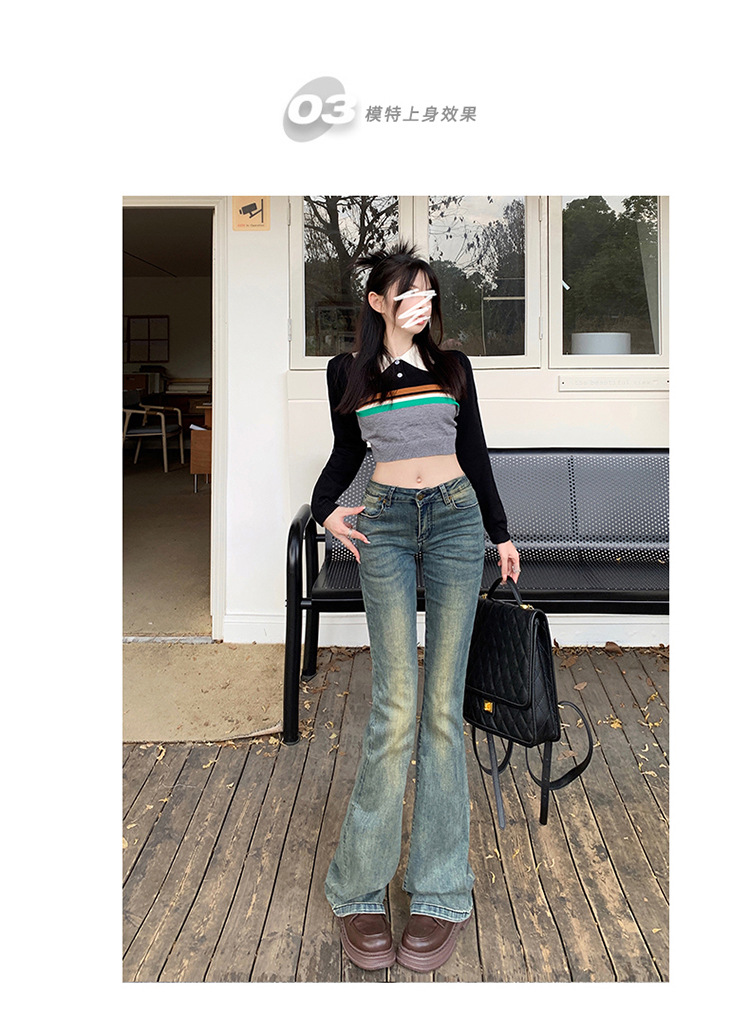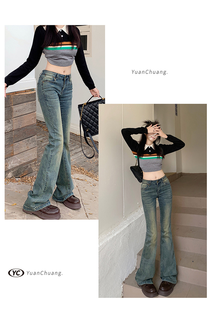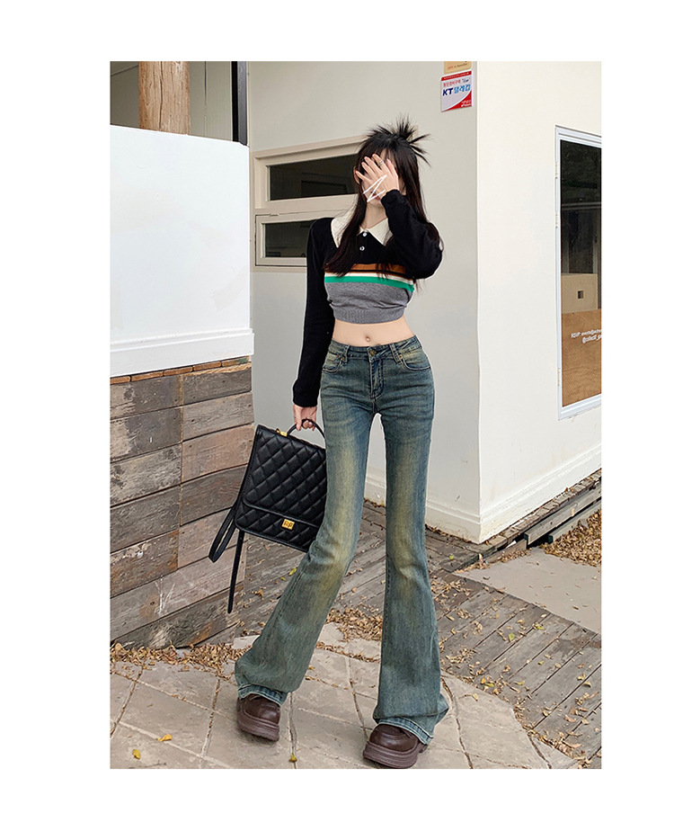 미국 레트로 마이크로 플레어 청바지 여성의 2024 새로운 낮은 허리 슬리밍 와이드 레그 올 매치 스트레치 말굽 바지스토어 가기