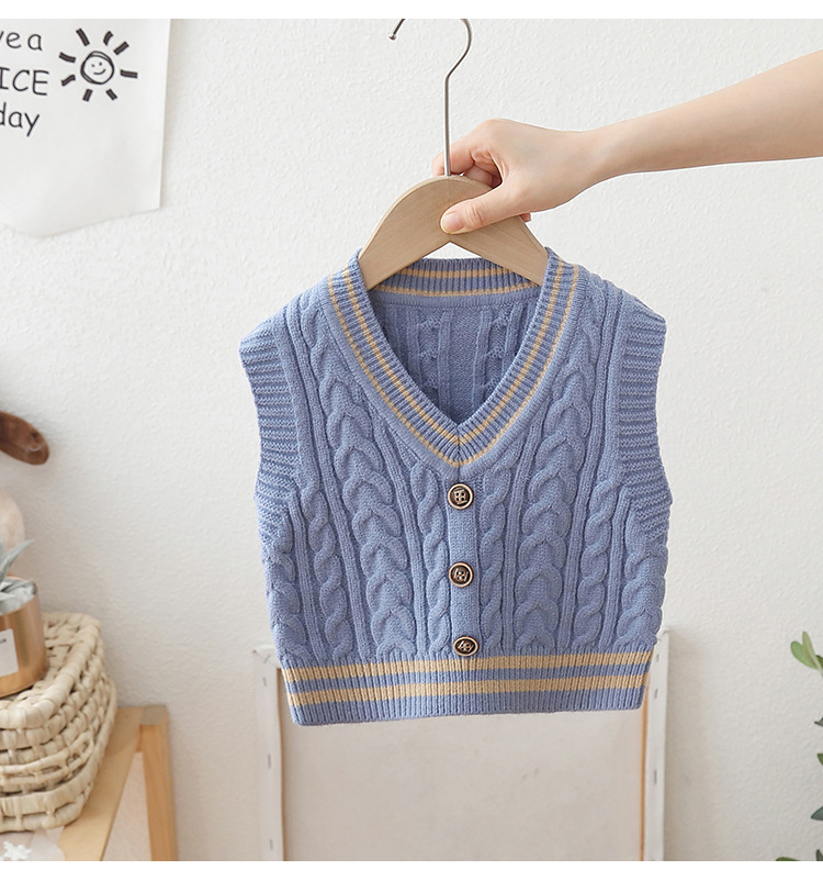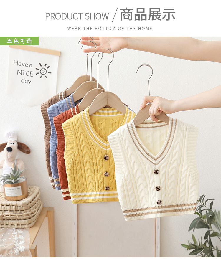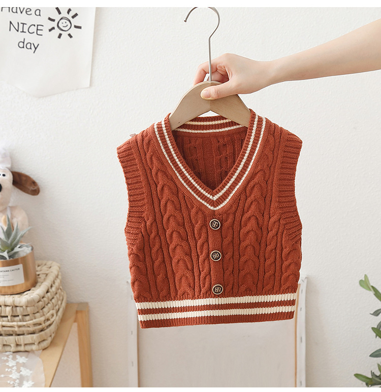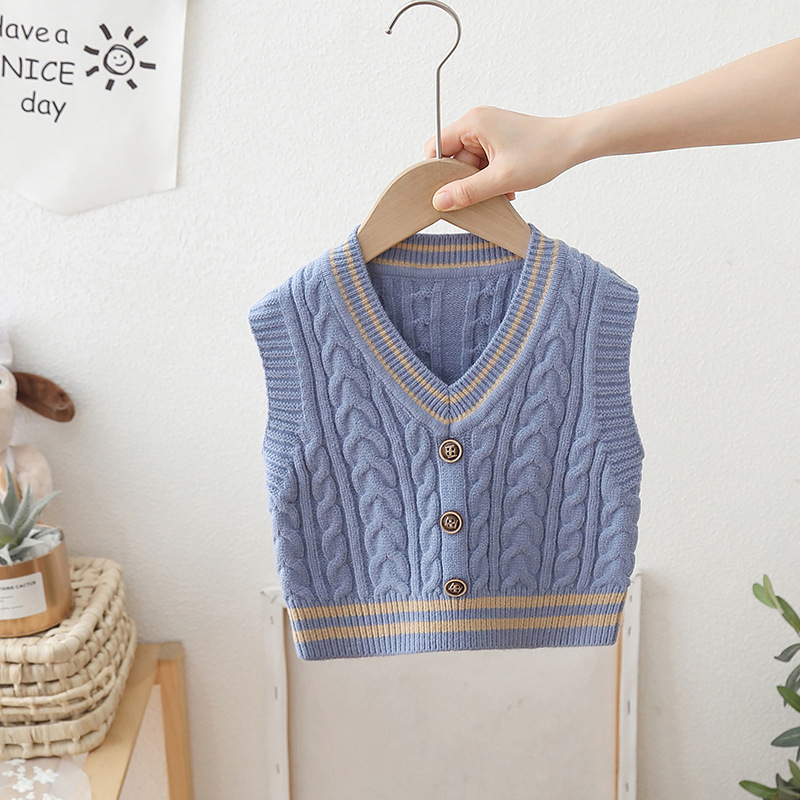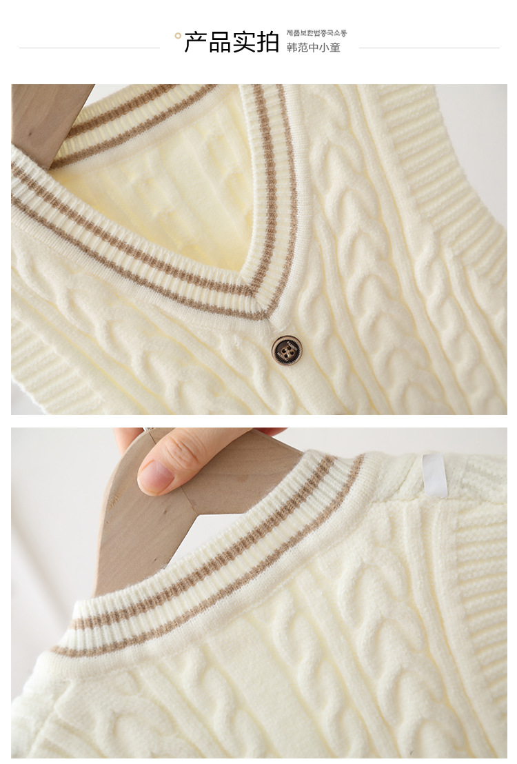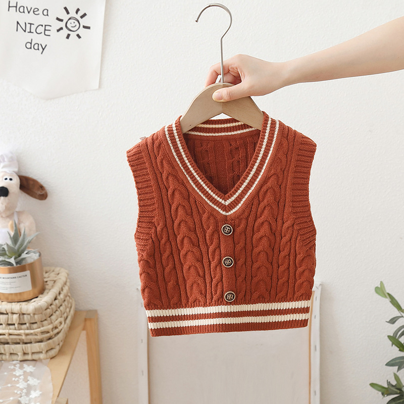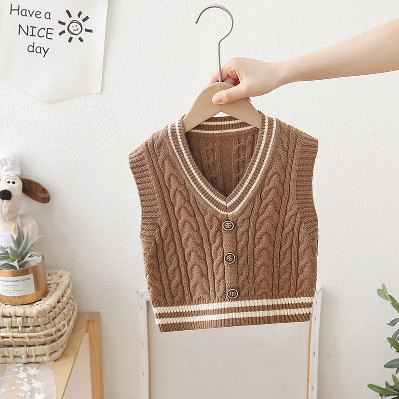 2024 년 새로운 소년 스웨터 조끼 외국 스타일의 가을 어린이 니트 조끼 느슨한 V 칼라스토어 가기