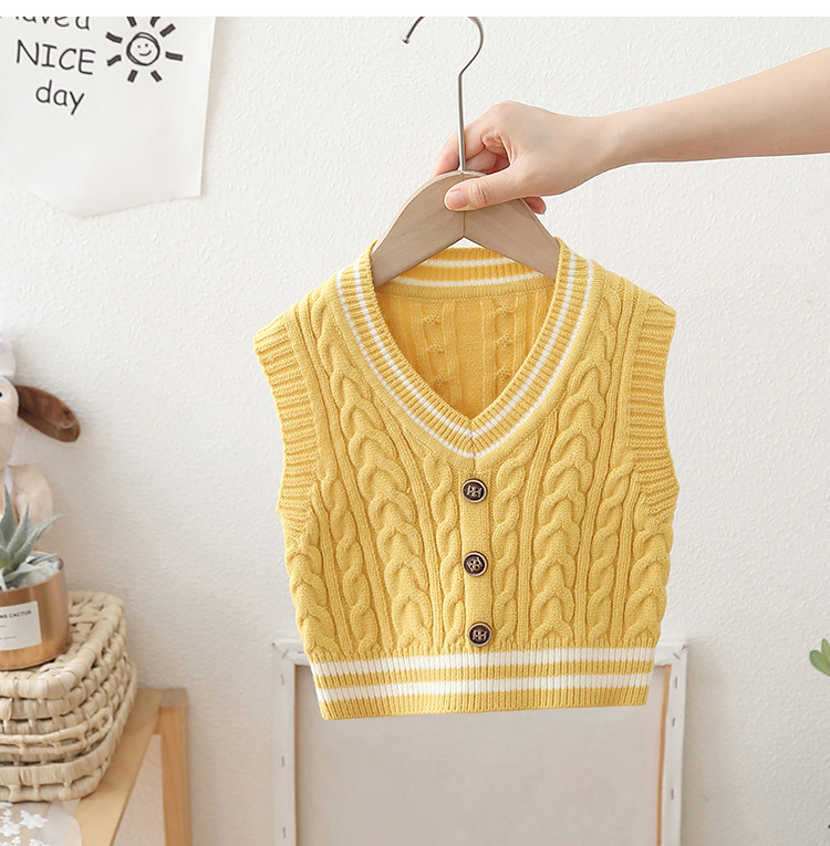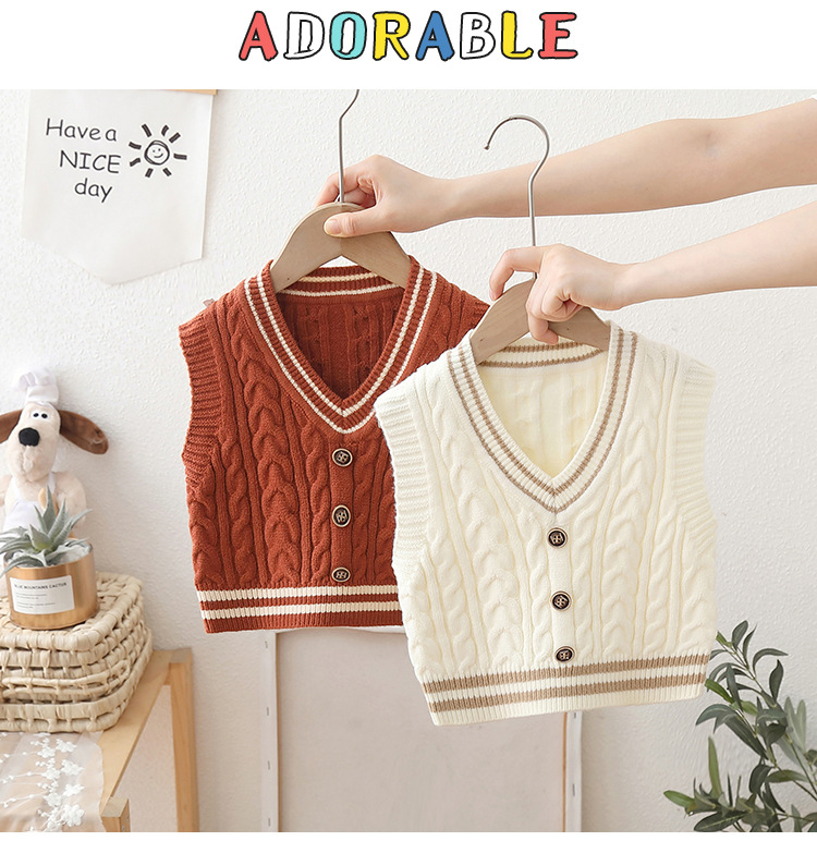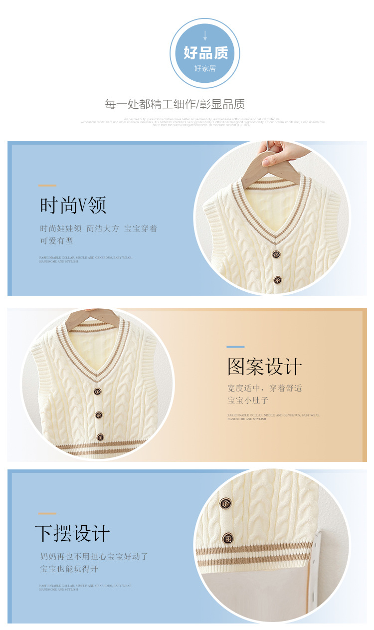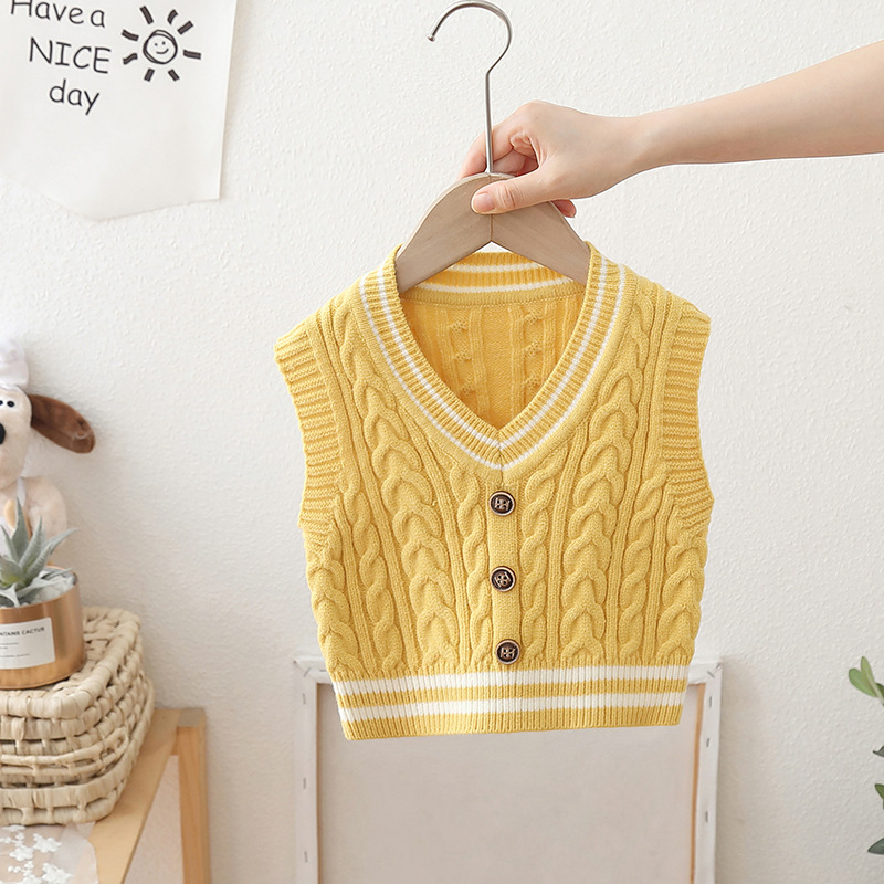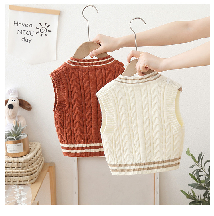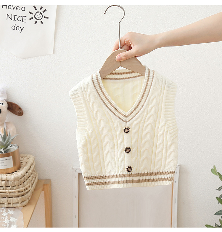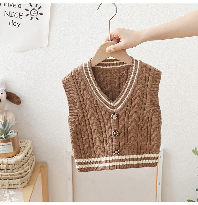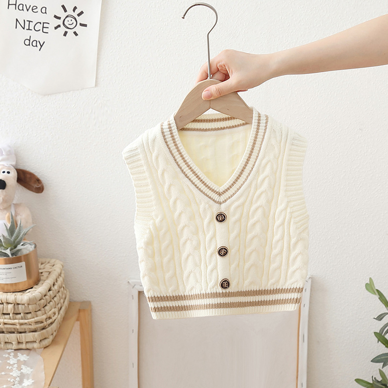 2024 년 새로운 소년 스웨터 조끼 외국 스타일의 가을 어린이 니트 조끼 느슨한 V 칼라스토어 가기