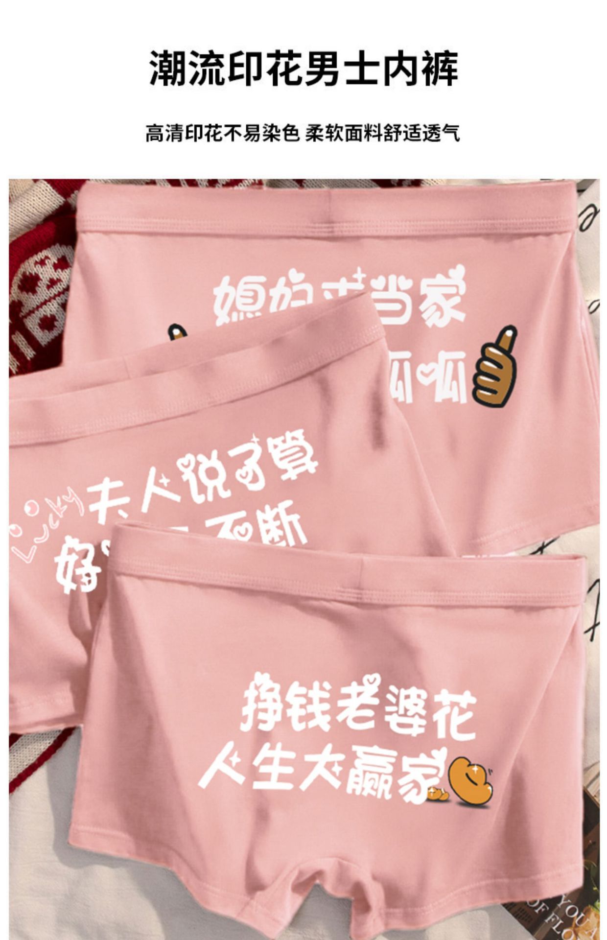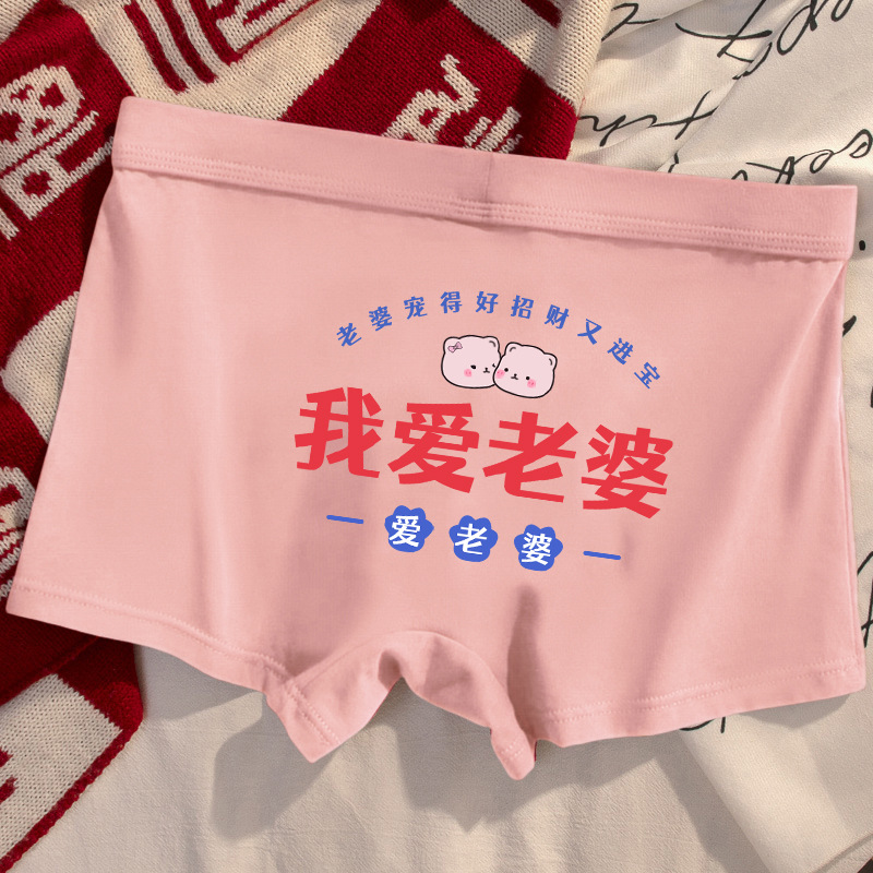 Tanabata 발렌타인 데이 남자 친구 I Love 아내 핑크 팬티 남자 코튼 4 코너 만화 귀여운 치열한 남자 핑크 팬티