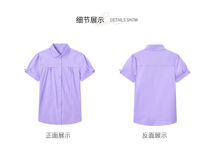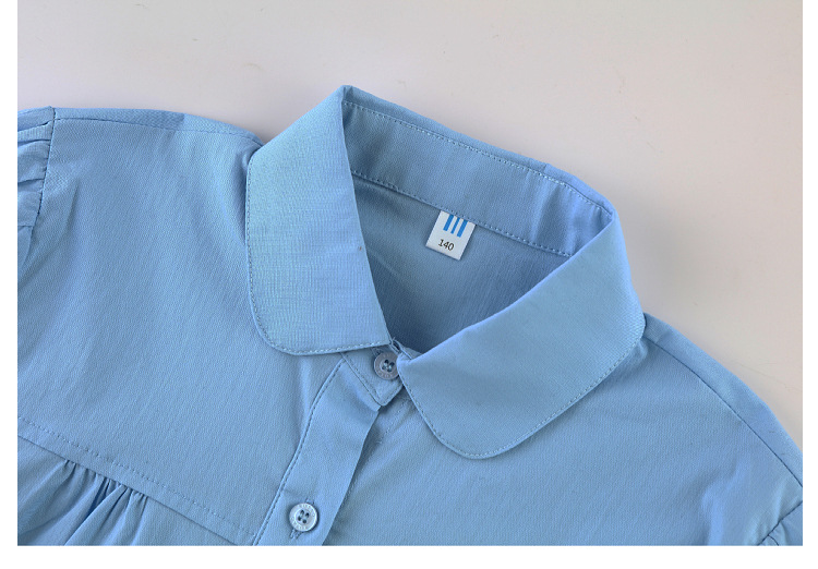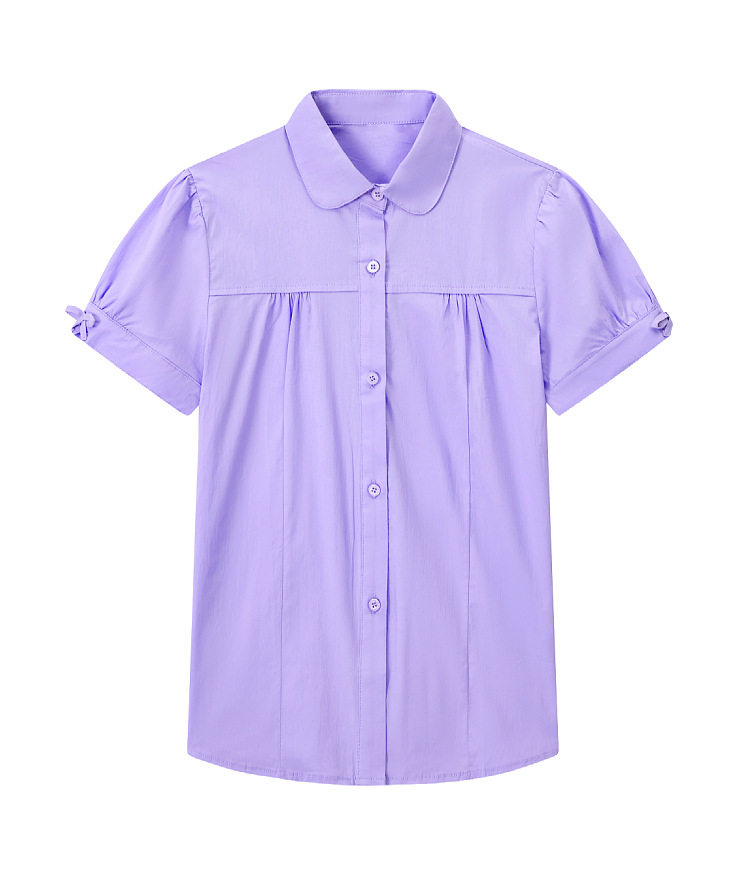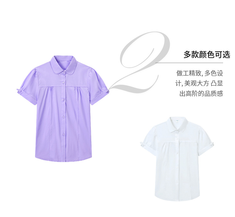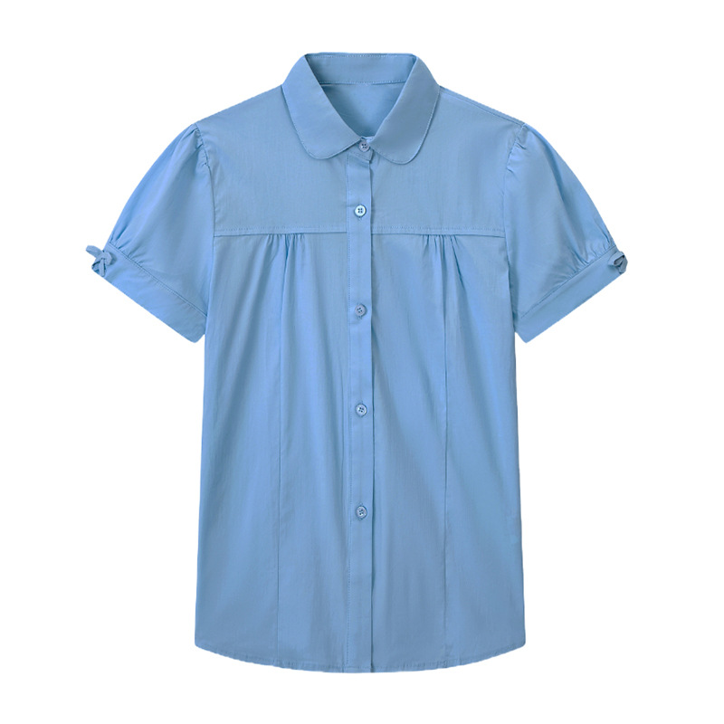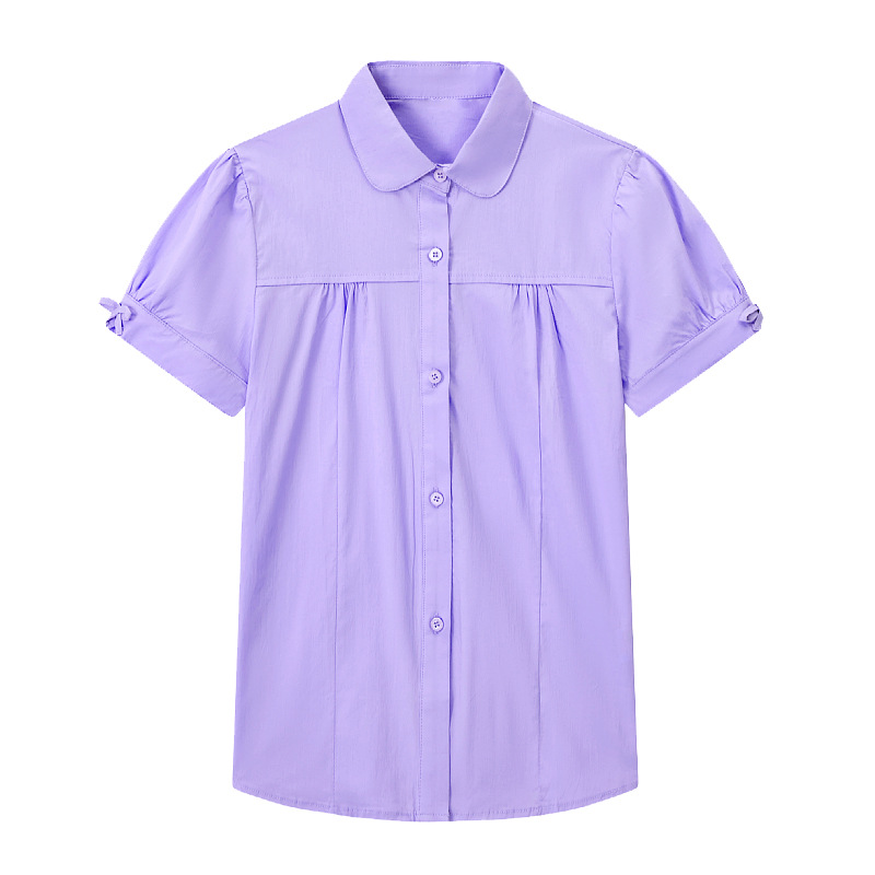 중학교 및 큰 어린이를위한 소녀 면 반팔 셔츠 초등학생을위한 단색 면 셔츠 여름 공연 의류 공장 아울렛
