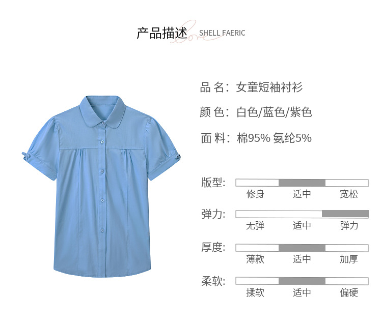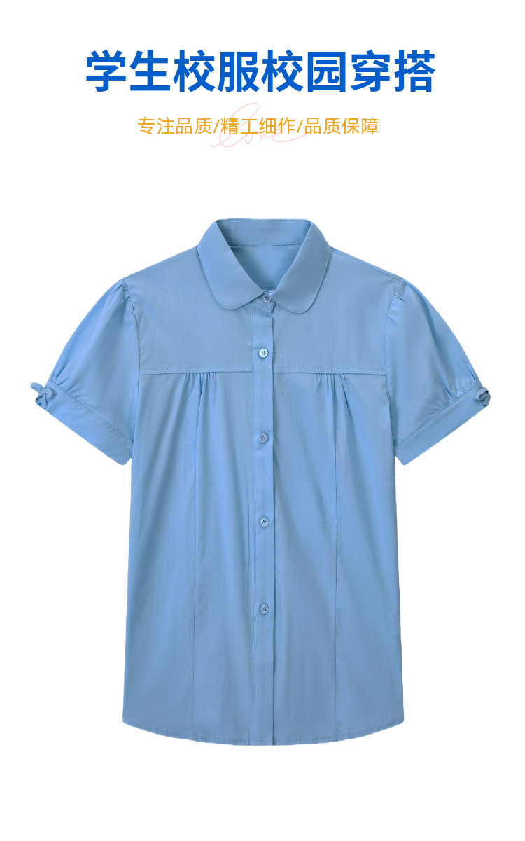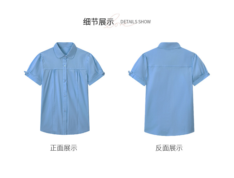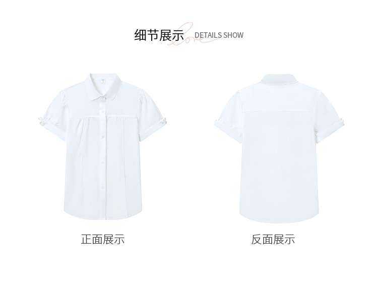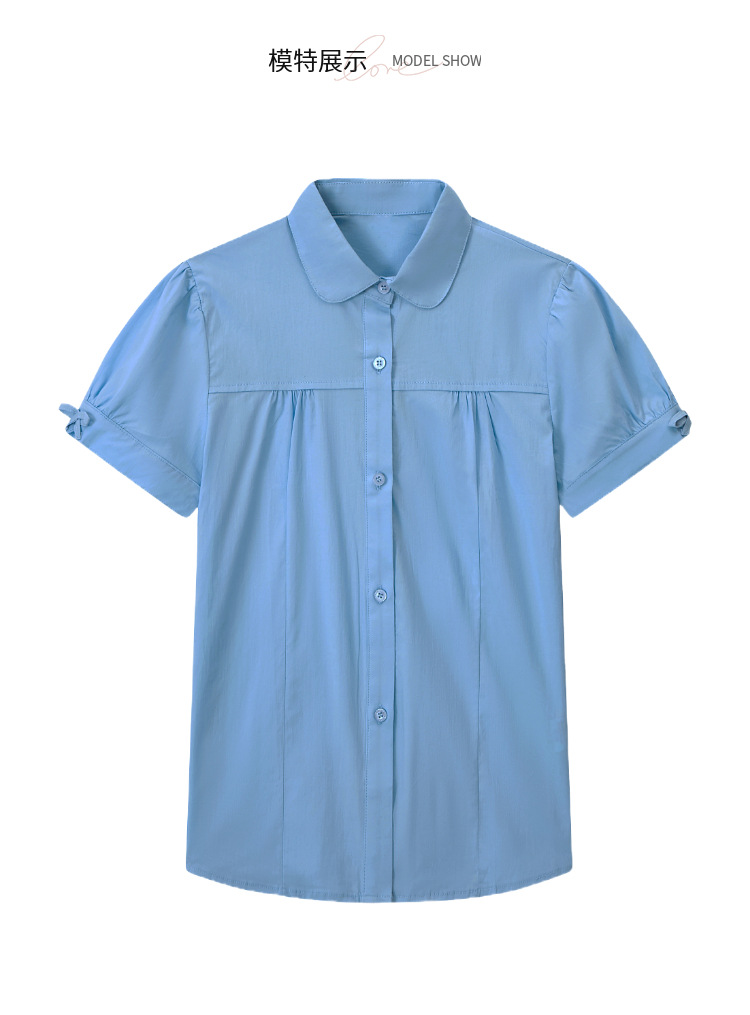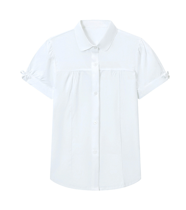 중학교 및 큰 어린이를위한 소녀 면 반팔 셔츠 초등학생을위한 단색 면 셔츠 여름 공연 의류 공장 아울렛