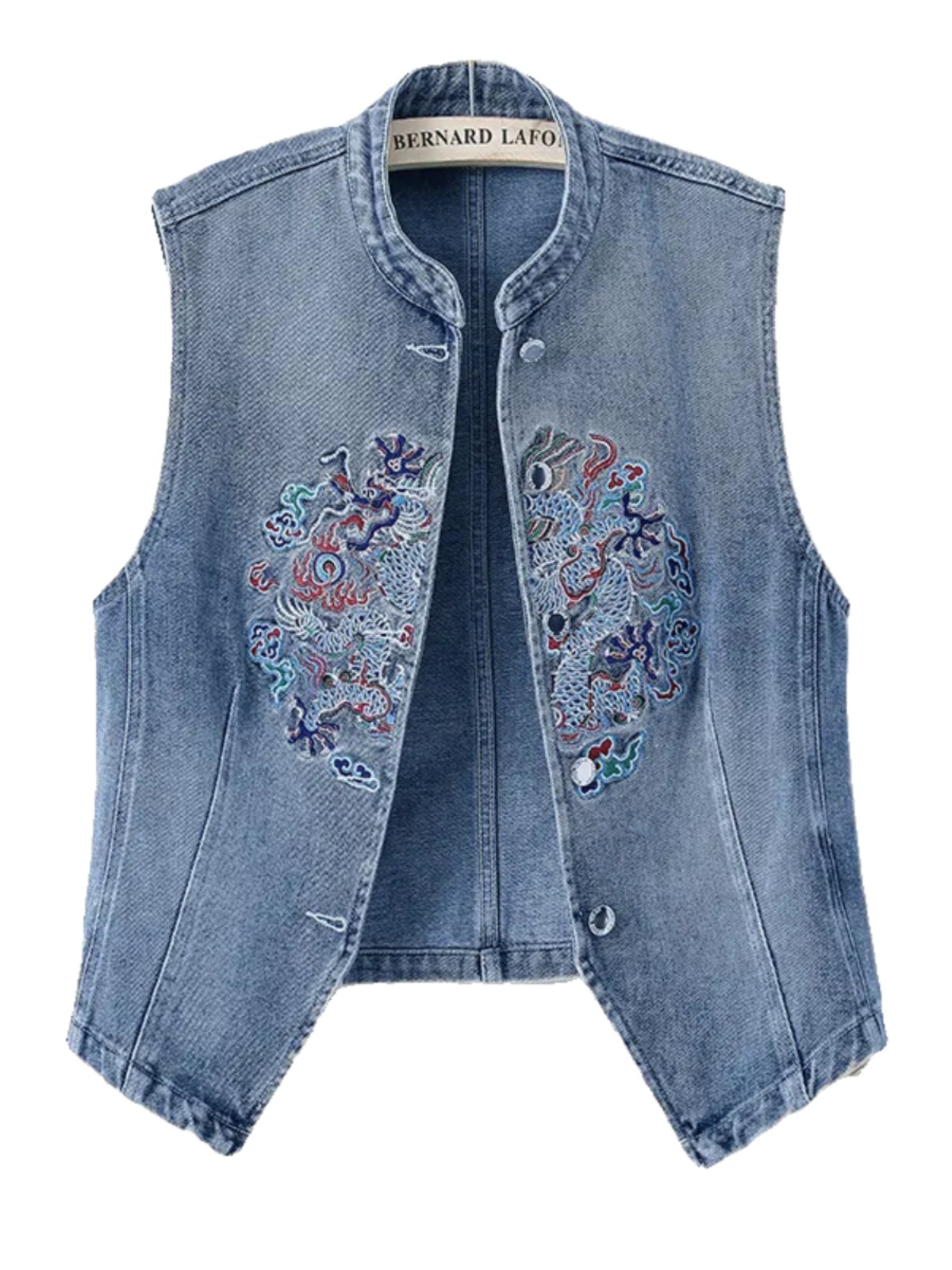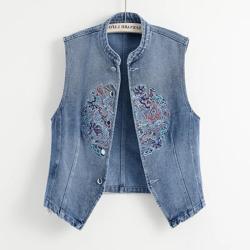 여성을위한 얇은 데님 조끼 재킷 여름 새로운 중국 스타일 자수 기질 여성 탑 조끼 조끼