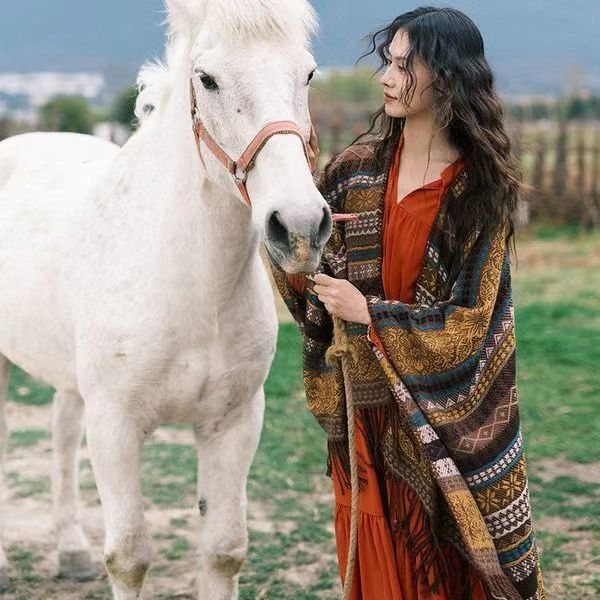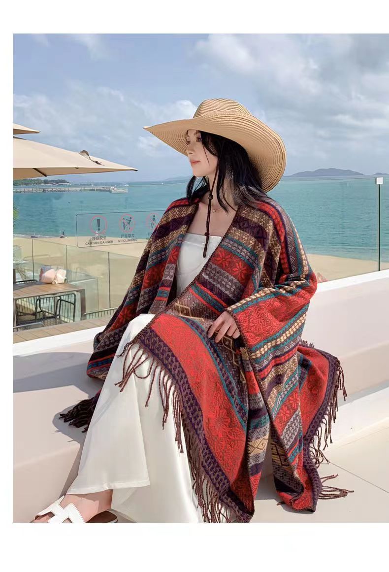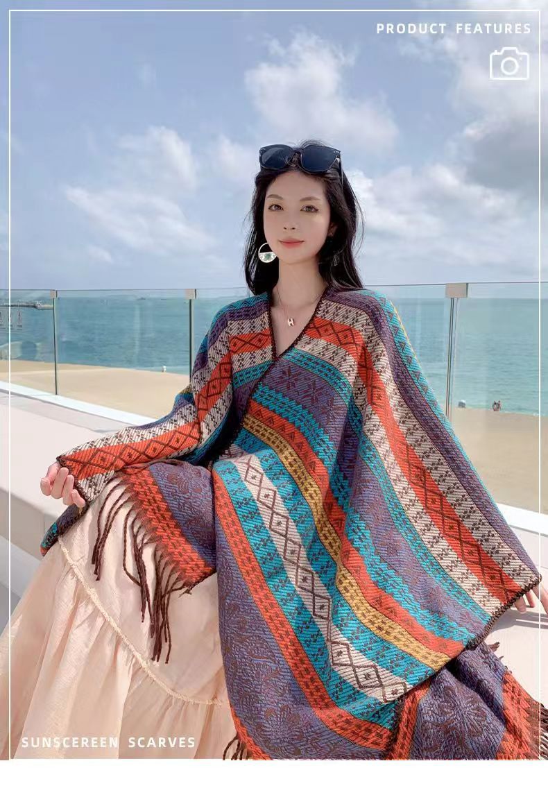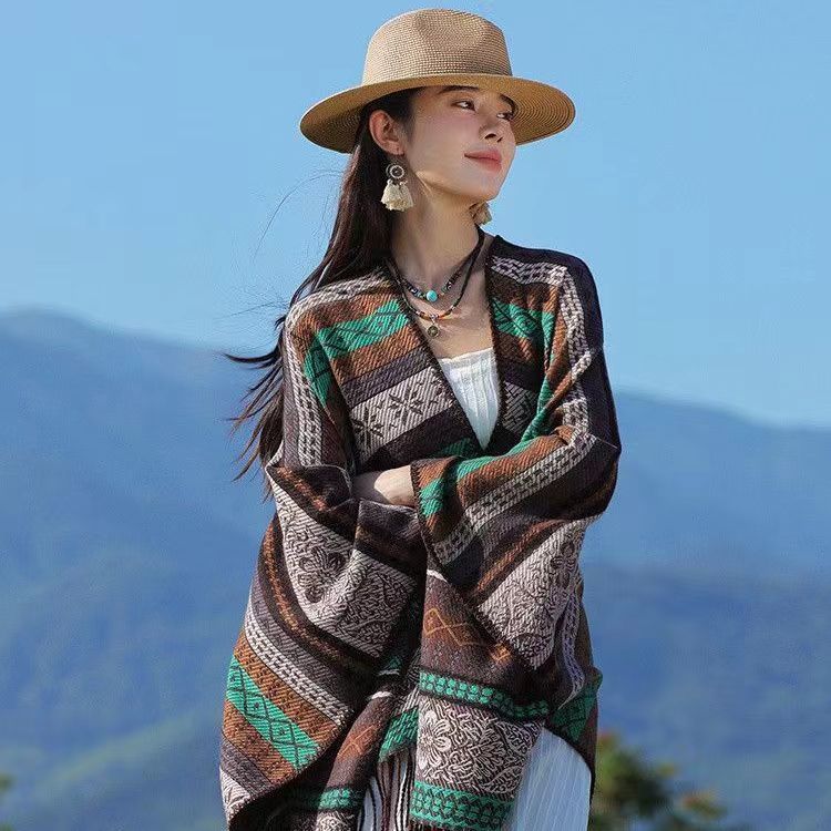 민족 스타일 목도리 줄무늬 망토 쉐이크 톤 폭발 새로 지어진 티베트 윈난 리장 올 매치 여행 따뜻한스토어 가기
