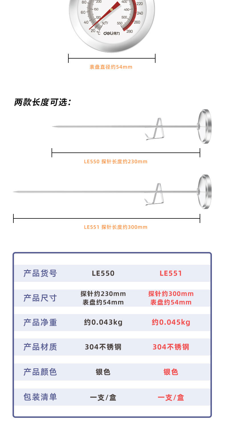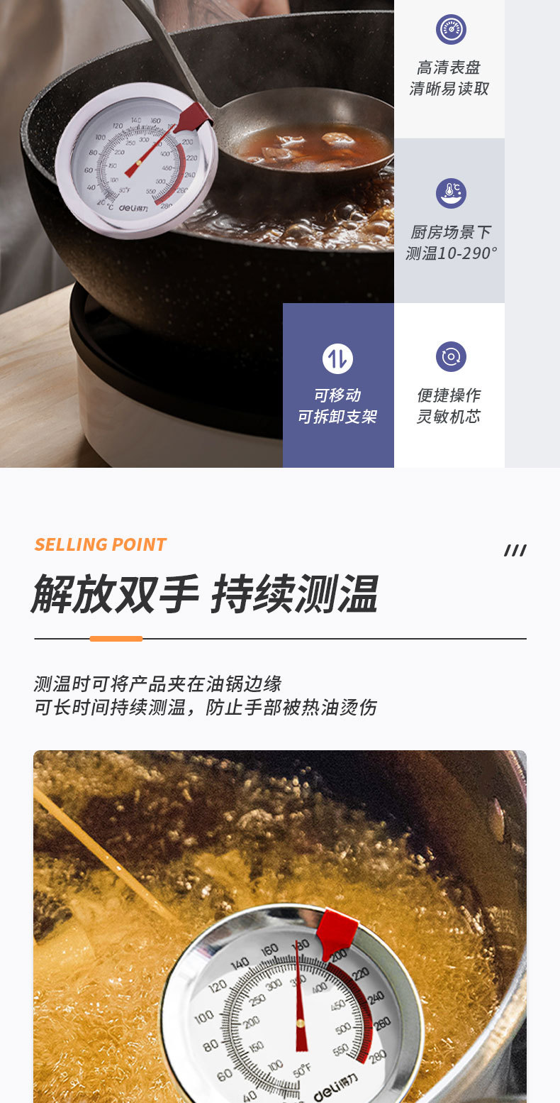 델리 LE551 오일 온도 미터 오일 팬 프라이어 오일 온도 미터 고정밀 주방 식품 베이킹 프로브 온도계스토어 가기