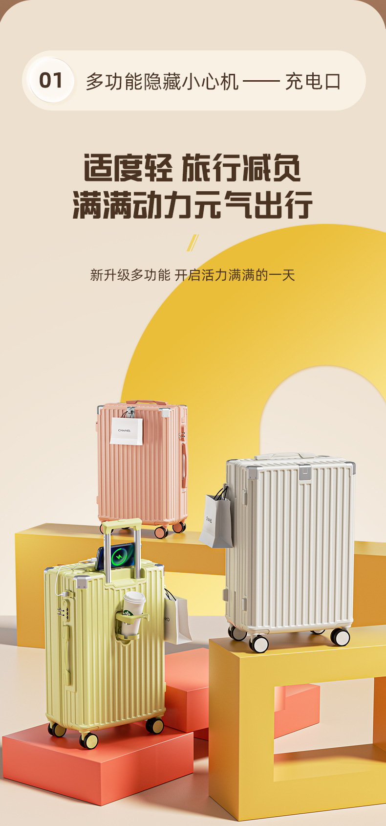 높은 색상의 수하물 22-24 인치 탑승 상자 20 인치 여행 가방 다기능 수하물 케이스 2024 새로운 수하물