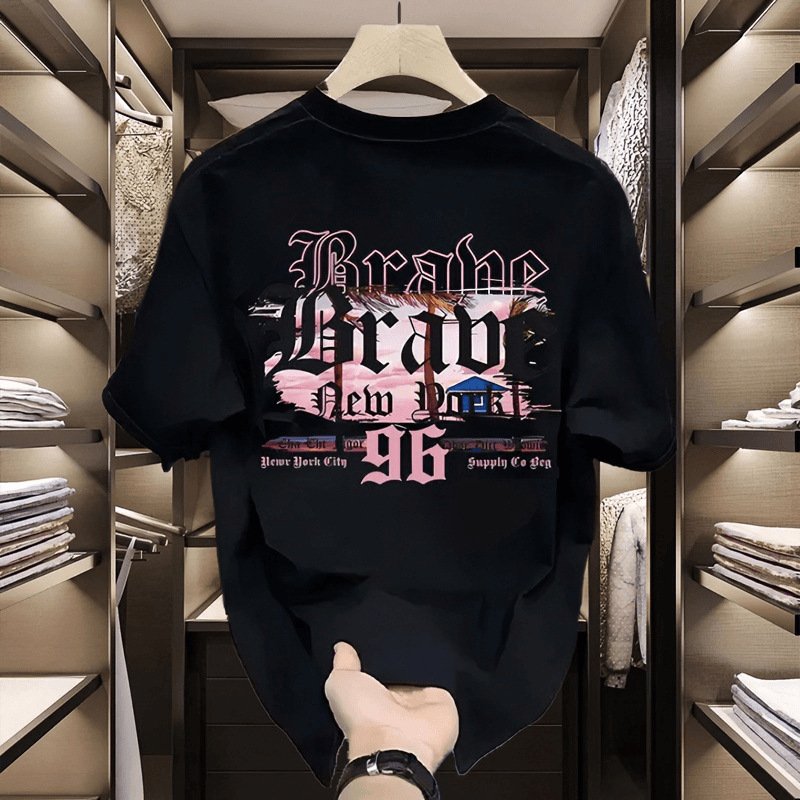 헤비 트렌디 브랜드 코튼 프린트 남성용 반팔 티셔츠 2024 새로운 여름 폭발 유행 캐주얼 크루 넥 티셔츠스토어 가기