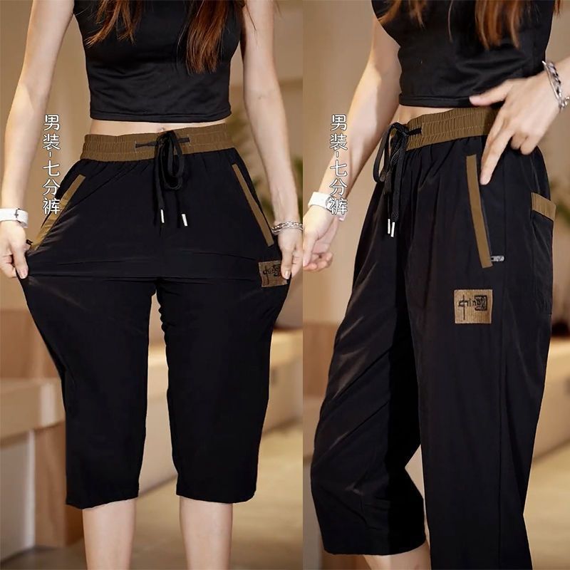 남자 캐주얼 바지 여름 얇은 바지 웨스턴 스타일 올 매치 카프리 바지 느슨한 간단한 포켓 지퍼 자수 1/2 조각