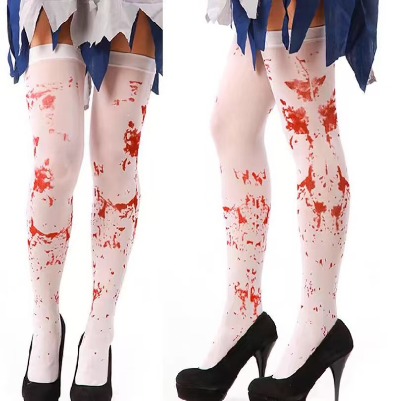 할로윈 블러드 양말 블러드 프린트 허벅지 양말 긴 튜브 피 묻은 양말 코스프레 가장 무도회 축제
