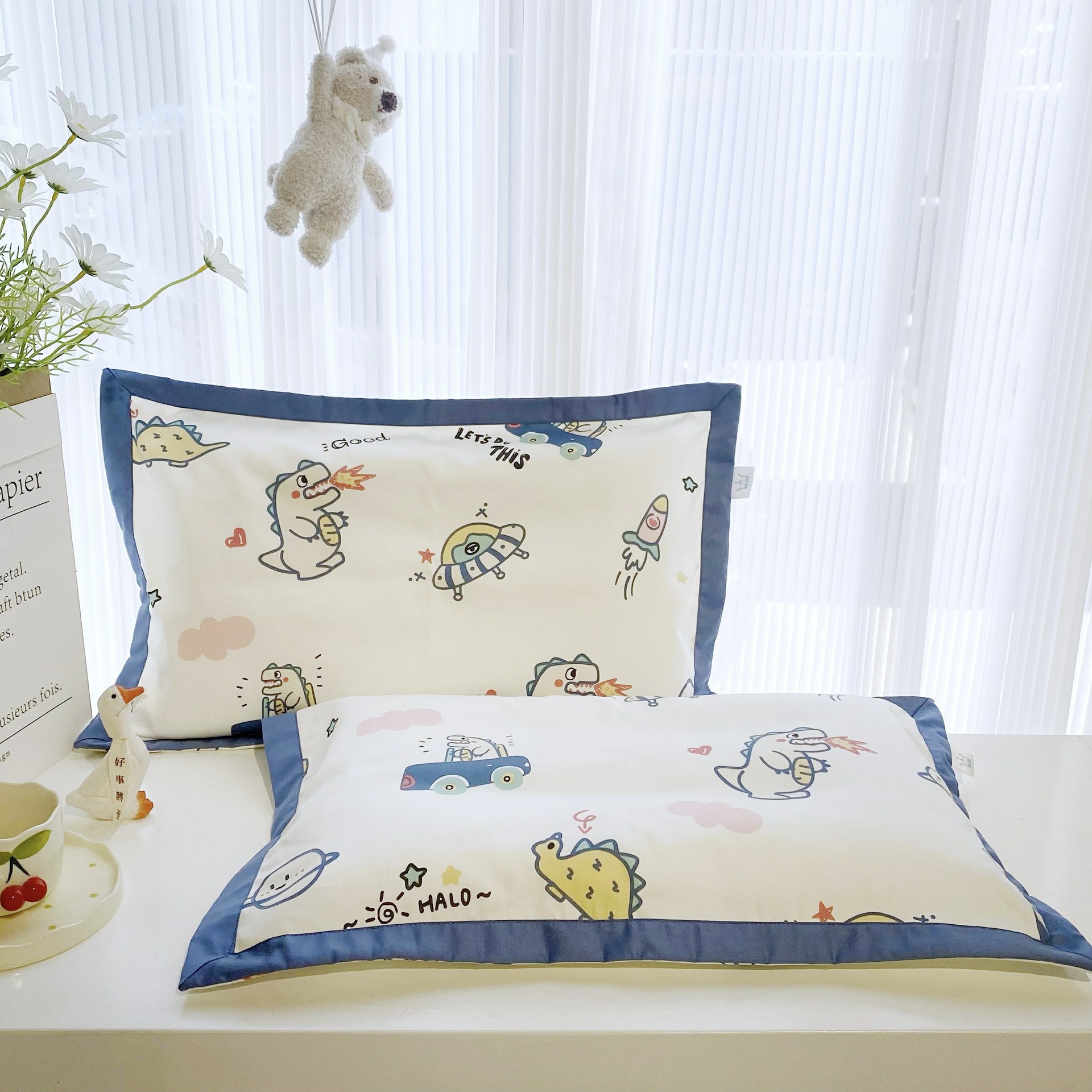 • 긴 스테이플 코튼 베갯잇-골린 파크 스타 공룡