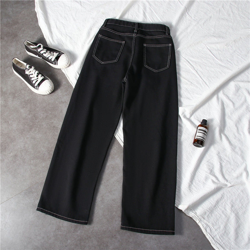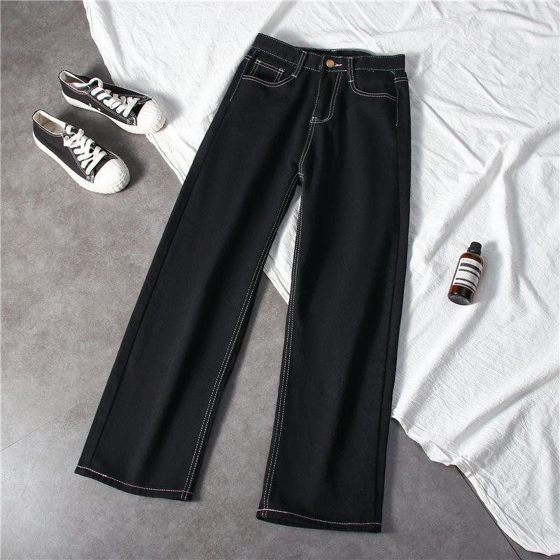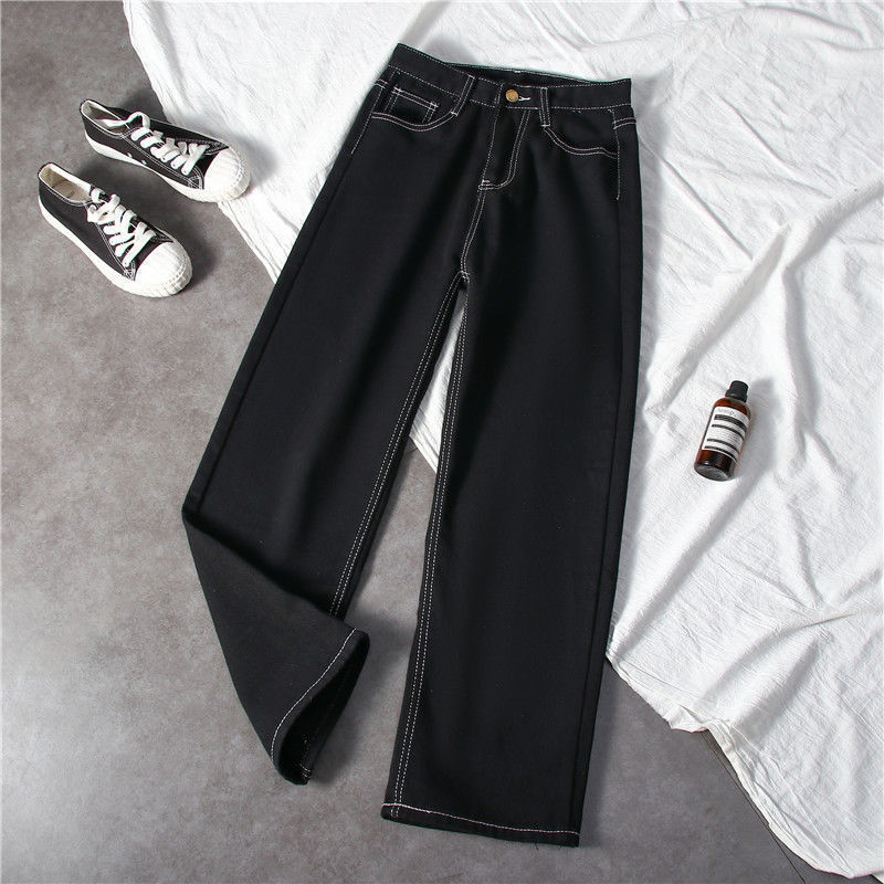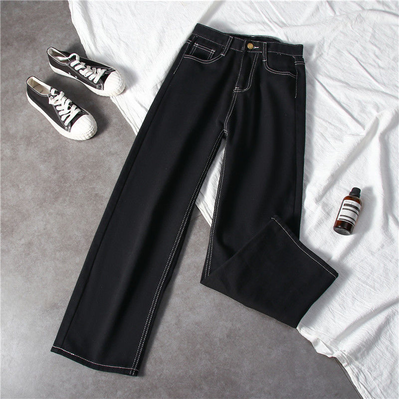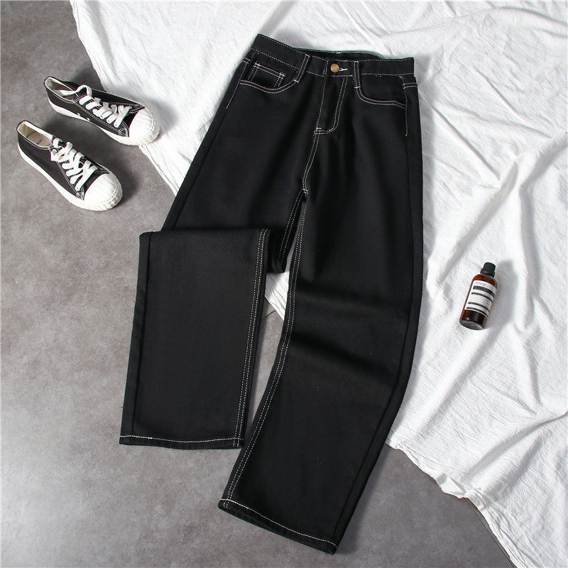 블랙 와이드 레그 청바지 여자 높은 허리 슬리밍 느슨한 캐주얼 올매치 9 포인트 스트레이트 올 매치… 학생들을위한 한국 스타일 유행스토어 가기
