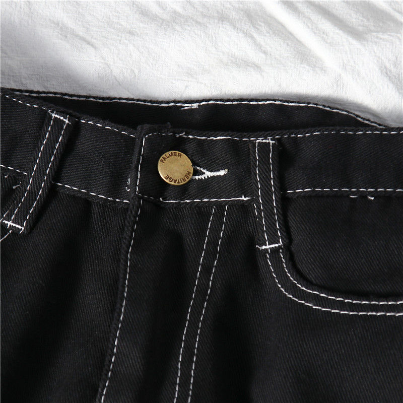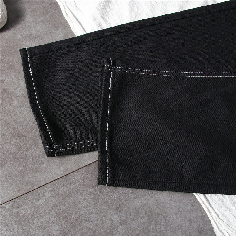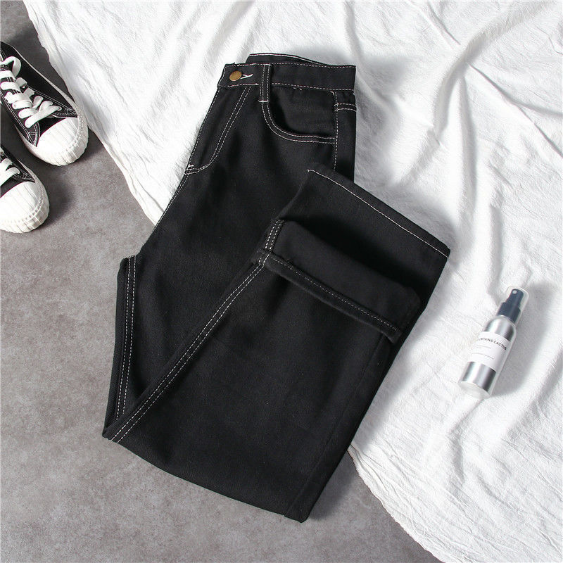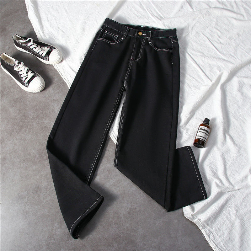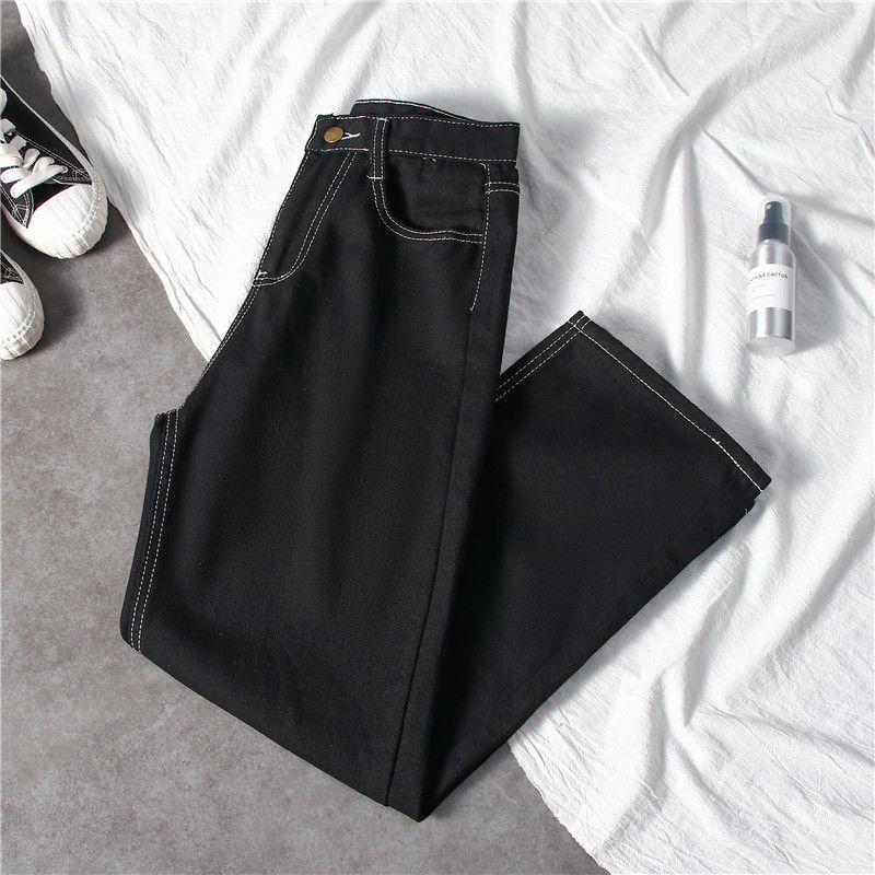블랙 와이드 레그 청바지 여자 높은 허리 슬리밍 느슨한 캐주얼 올매치 9 포인트 스트레이트 올 매치… 학생들을위한 한국 스타일 유행스토어 가기