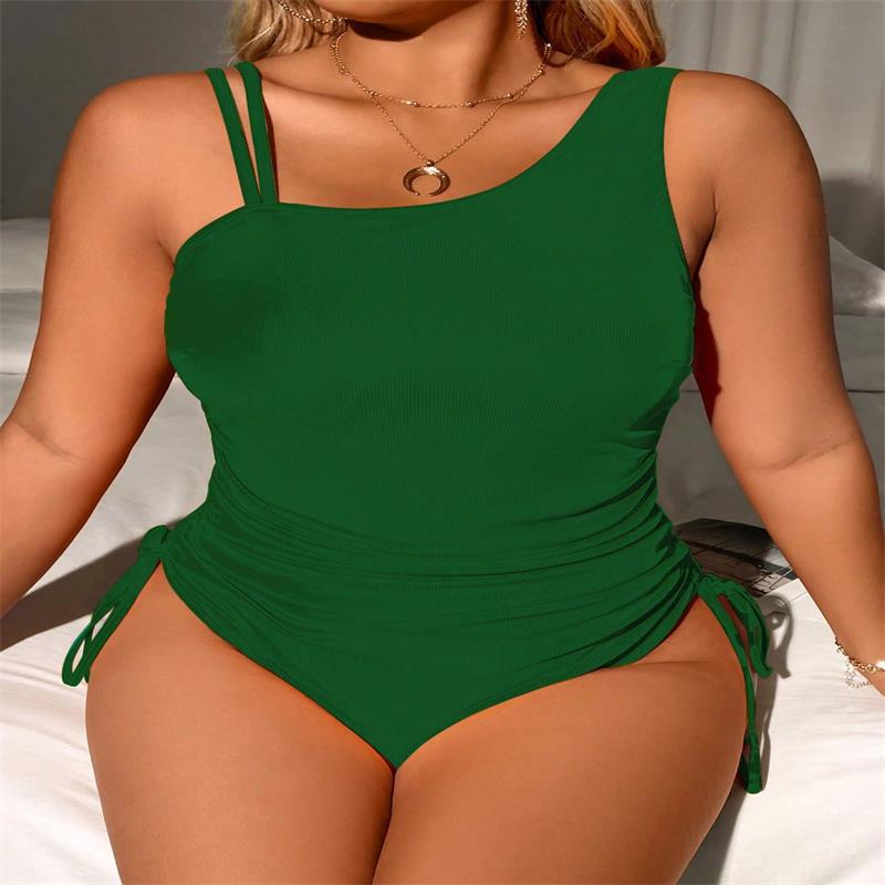새로운 아마존 국경 유럽 및 미국 멀티 컬러 플러스 사이즈 수영복 여성 원피스 단색 섹시한 비키니 수영복 도매