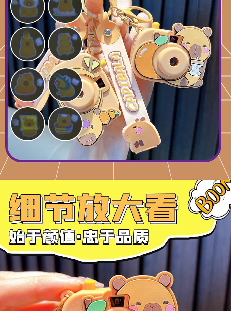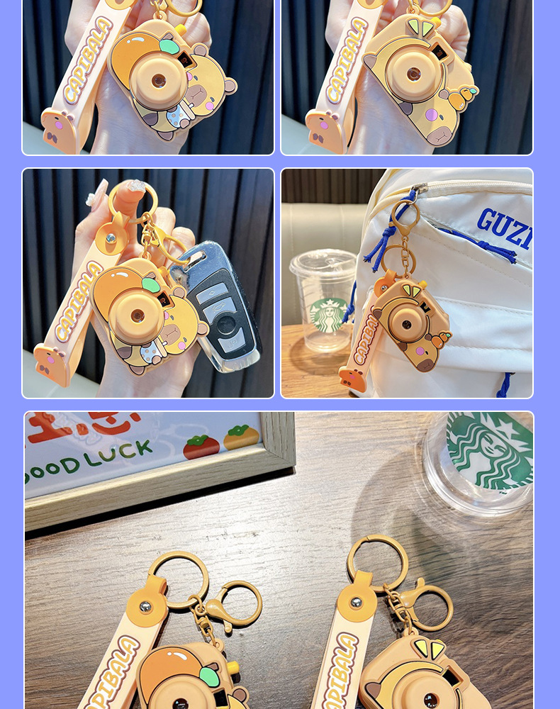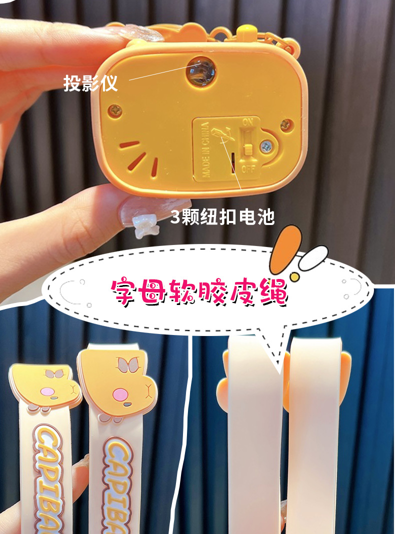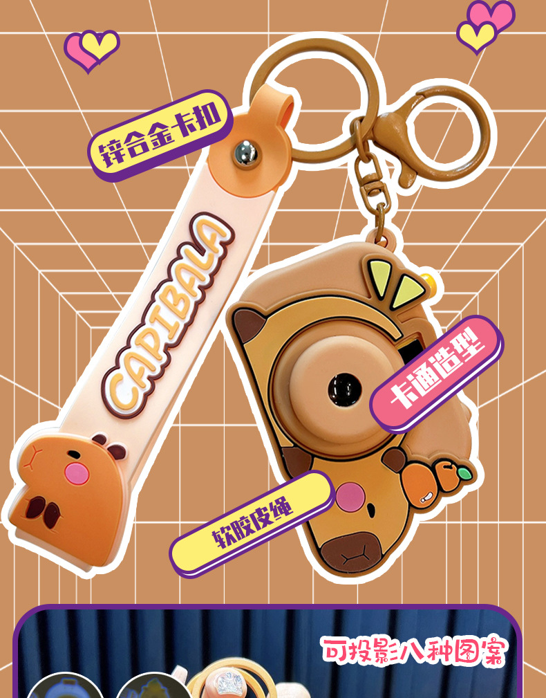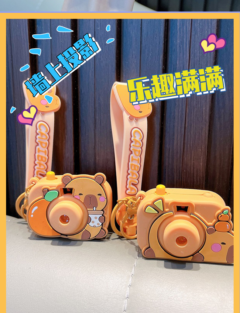 Capibala 프로젝션 카메라 키 체인 귀여운 카피 바라 킹 글로우 키 체인 백 펜던트 작은 선물 도매스토어 가기