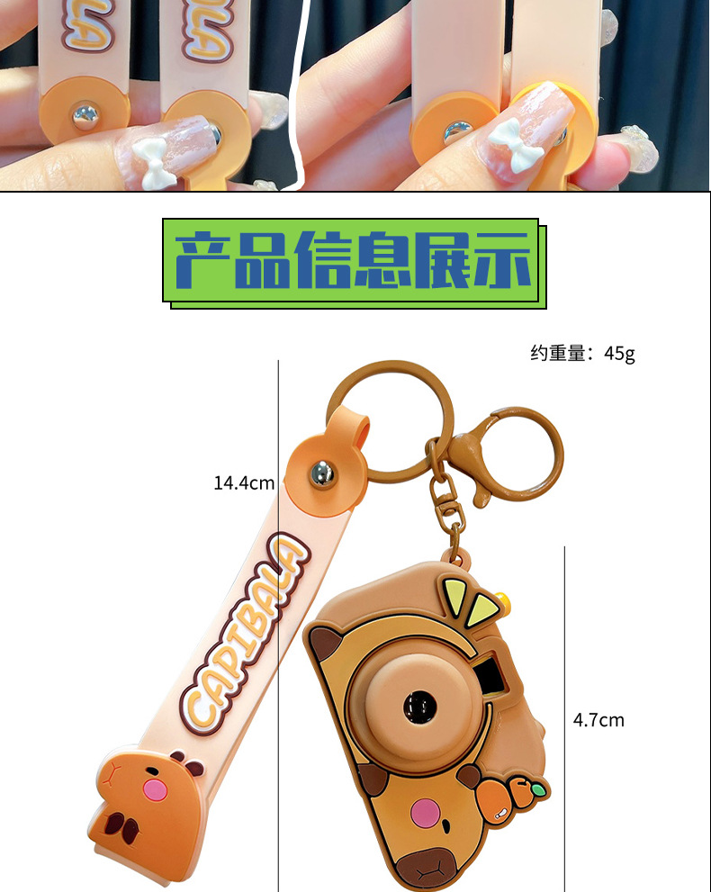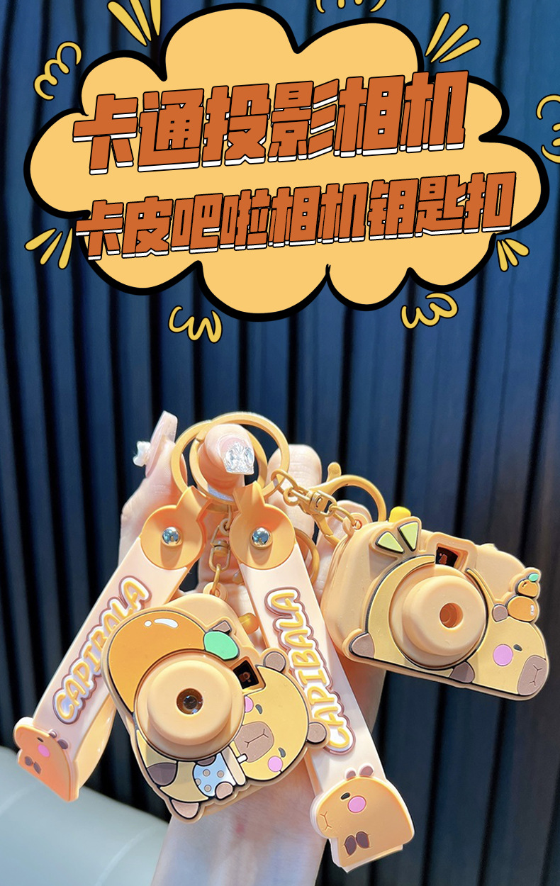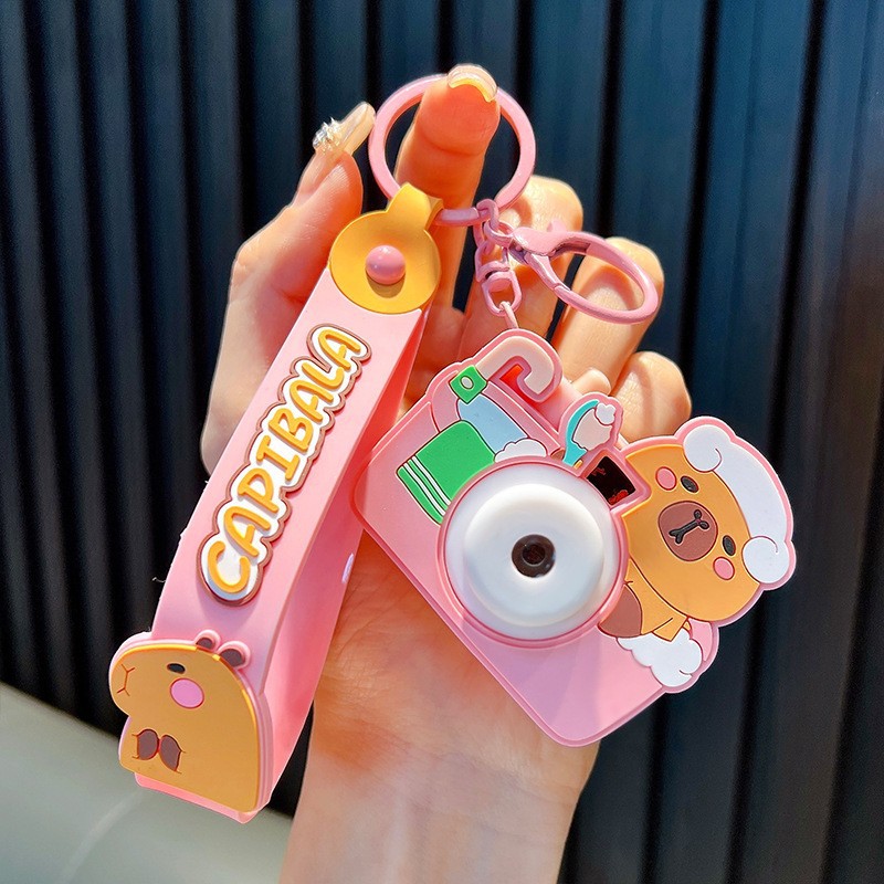 Capibala 프로젝션 카메라 키 체인 귀여운 카피 바라 킹 글로우 키 체인 백 펜던트 작은 선물 도매