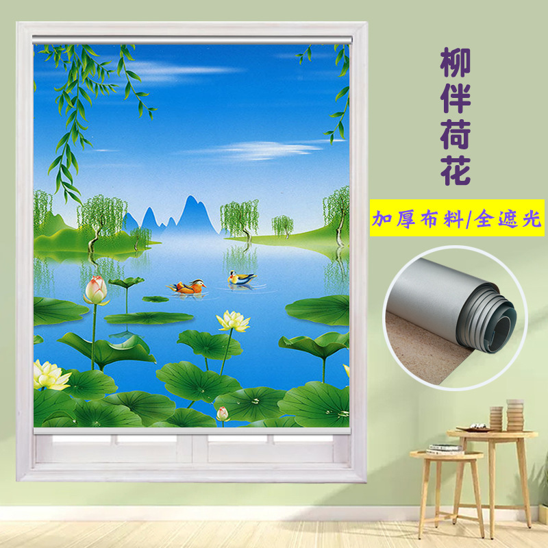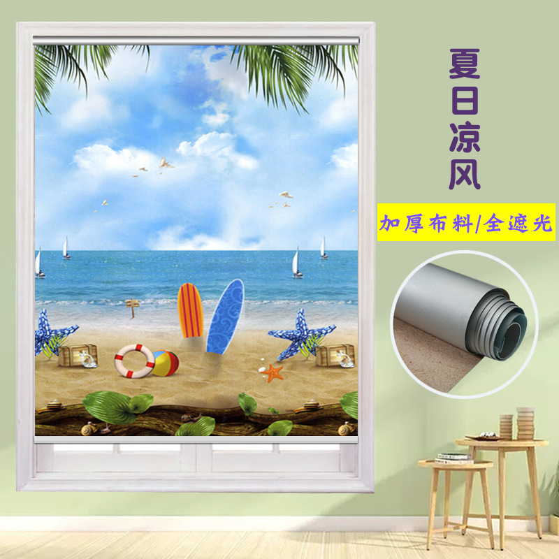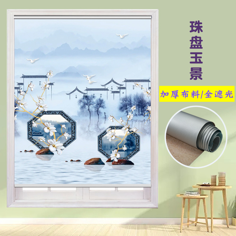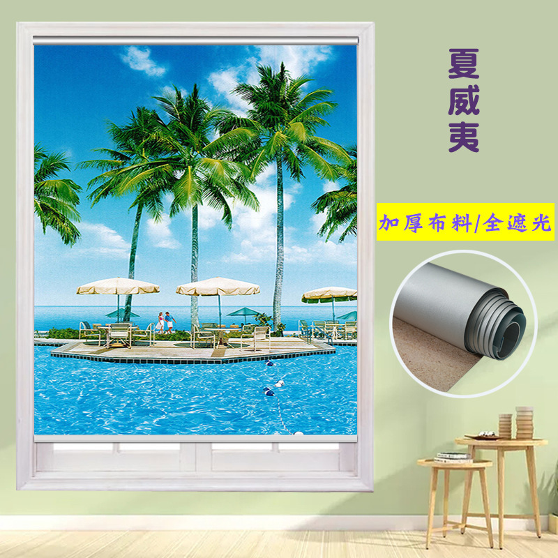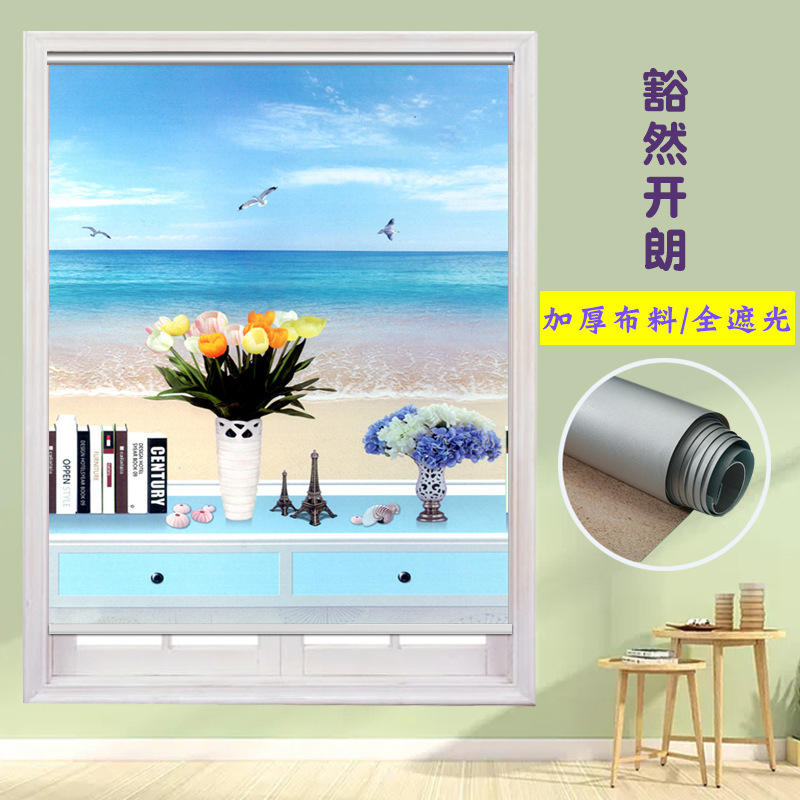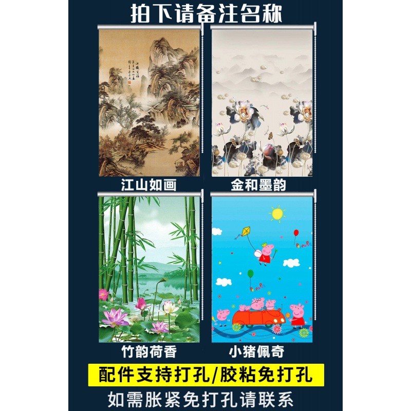 펀치 프리 커튼 롤 풀 리프트 핸드 풀 블랙 아웃 자외선 차단 침실 주방 루버 욕실 창 차양 방수스토어 가기