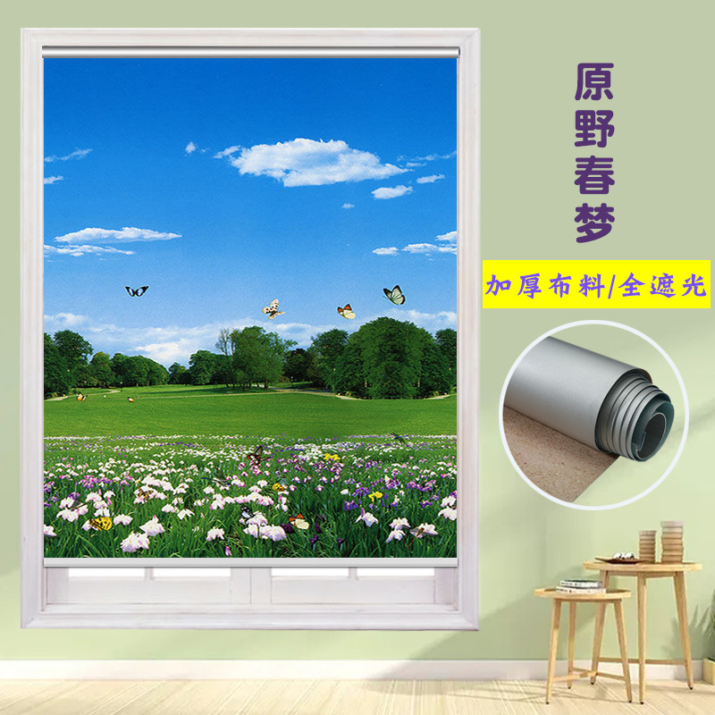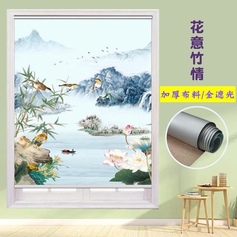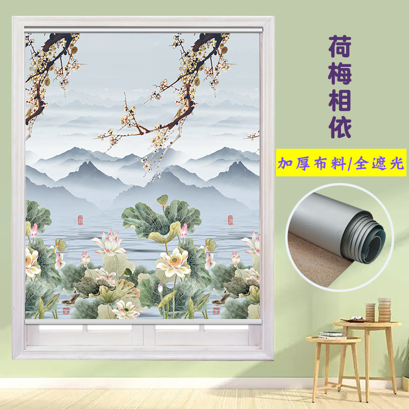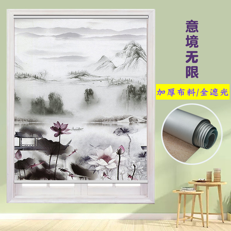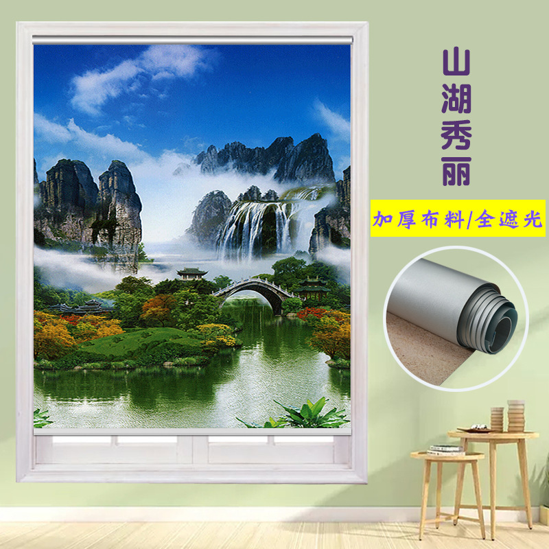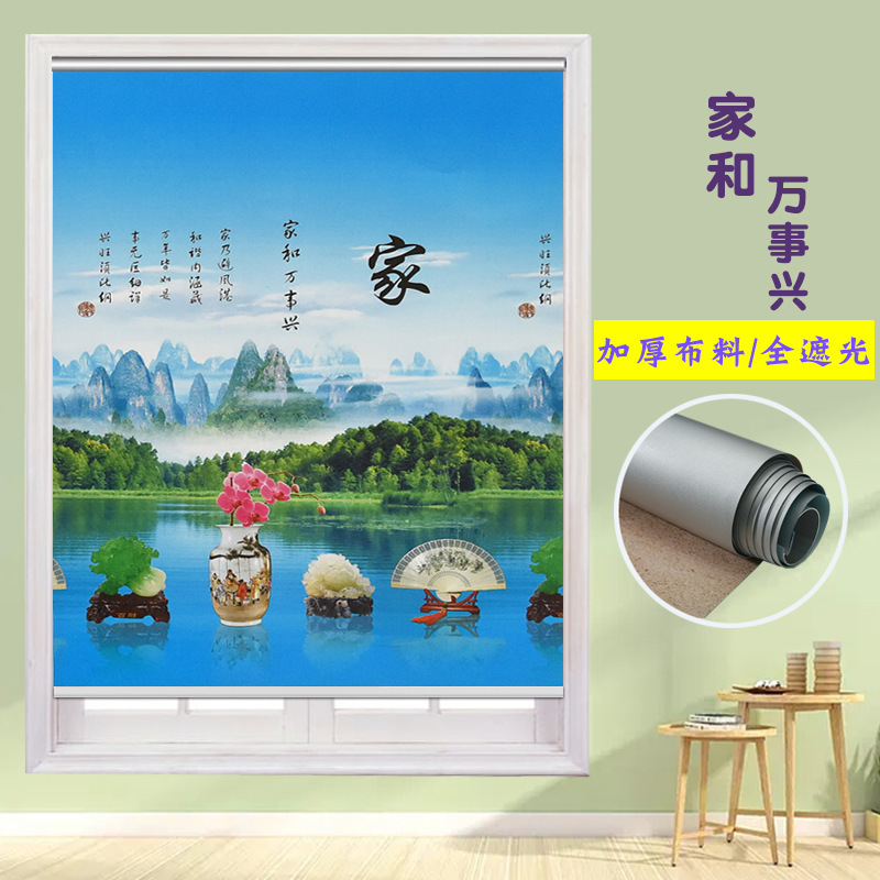 펀치 프리 커튼 롤 풀 리프트 핸드 풀 블랙 아웃 자외선 차단 침실 주방 루버 욕실 창 차양 방수스토어 가기