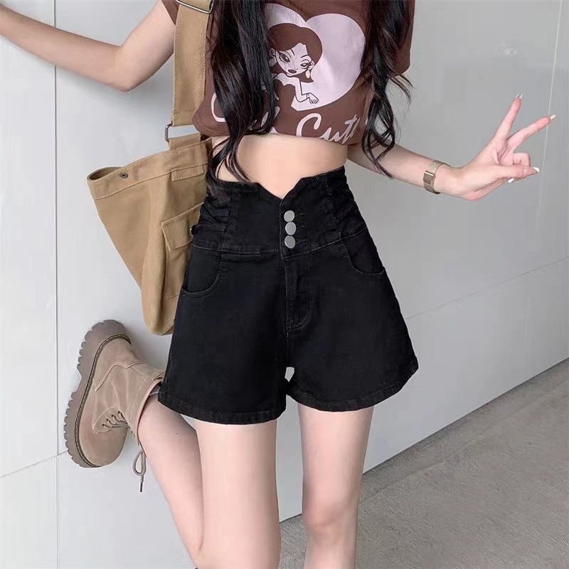 버클 반바지 여성용 틈새 복부 V 자형 슈퍼 하이 웨이스트 스트레이트 스트레치 슬림 핏 핫 팬츠 A 라인 데님 와이드 레그 팬츠 여름
