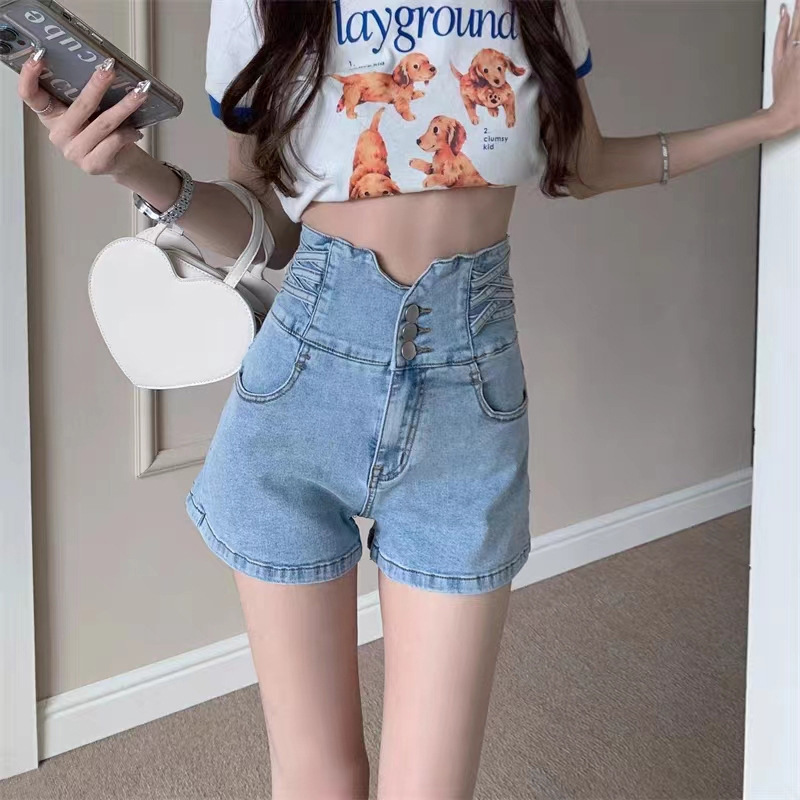버클 반바지 여성용 틈새 복부 V 자형 슈퍼 하이 웨이스트 스트레이트 스트레치 슬림 핏 핫 팬츠 A 라인 데님 와이드 레그 팬츠 여름스토어 가기
