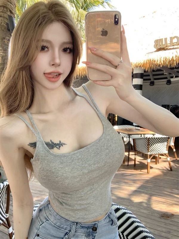 H333 # 스파이스 걸스 섹시한 더블 카미 솔 조끼 여자 가슴 패드 크로스 아름다운 백 원피스 탑스토어 가기