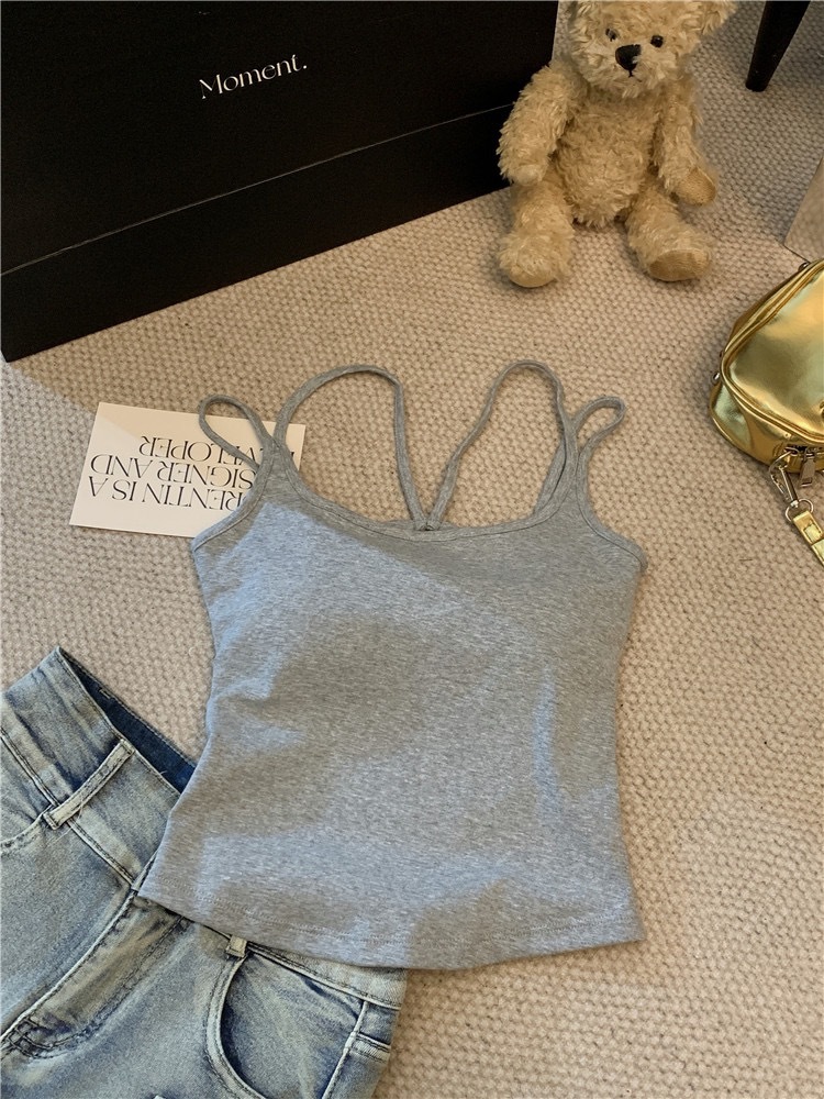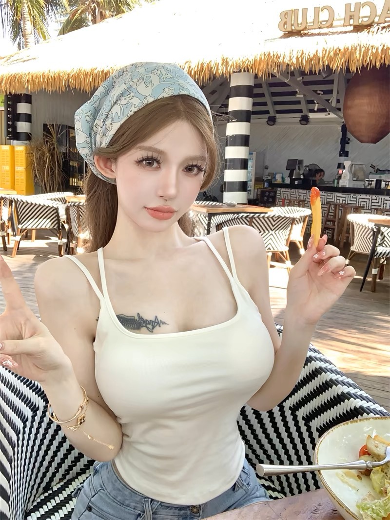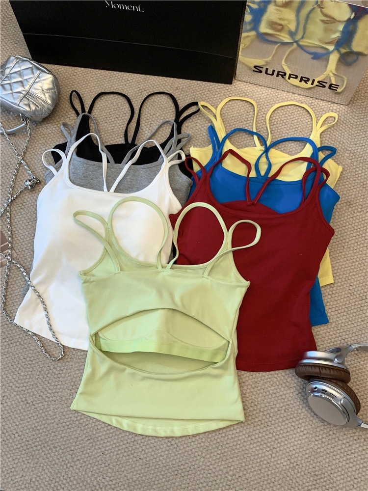 H333 # 스파이스 걸스 섹시한 더블 카미 솔 조끼 여자 가슴 패드 크로스 아름다운 백 원피스 탑