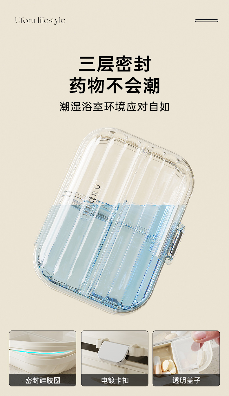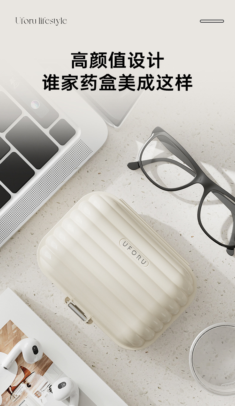 • 크림 화이트 [스몰 사이즈] 7-구획 밀봉 약 상자