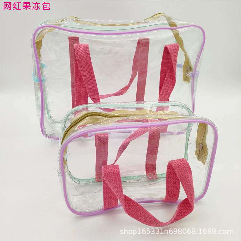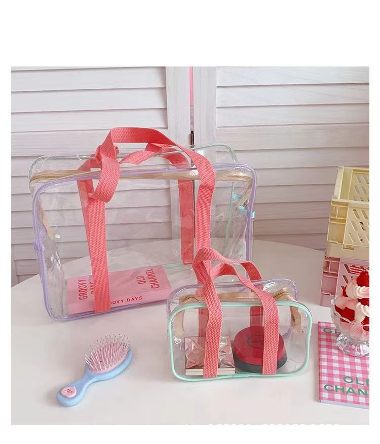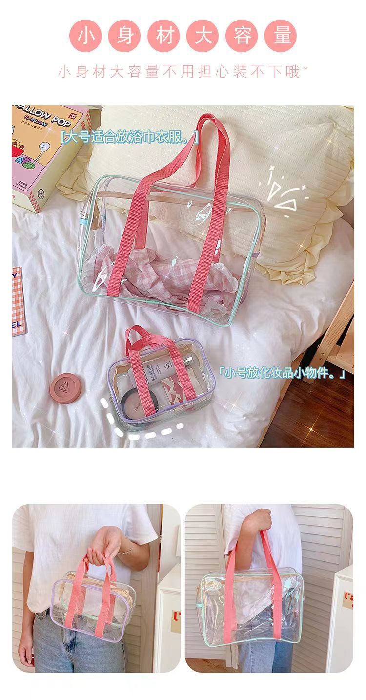 한국 인스 크림색 대용량 PVC 수영 투명 방수 비치백 수납 가방 마카롱 세면도구 가방스토어 가기