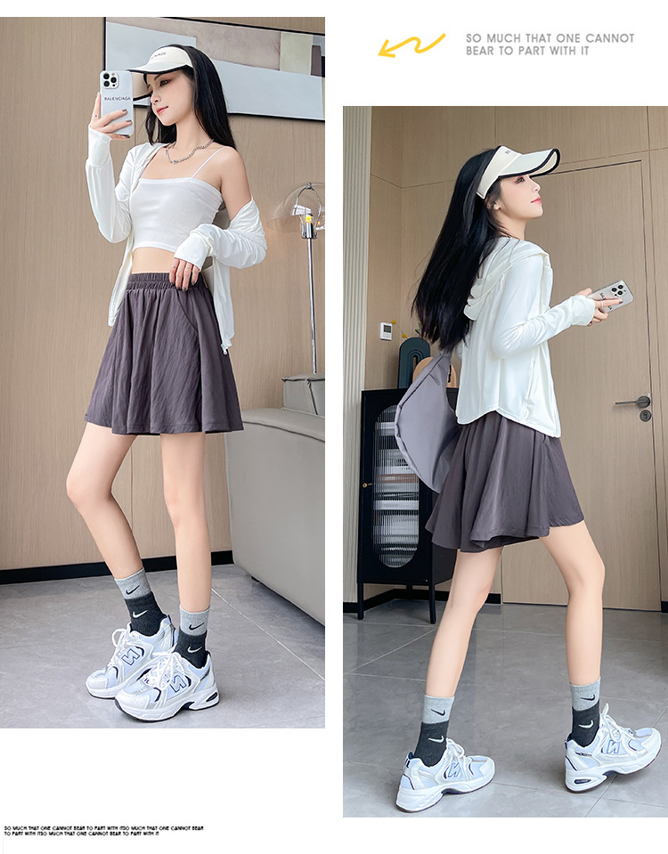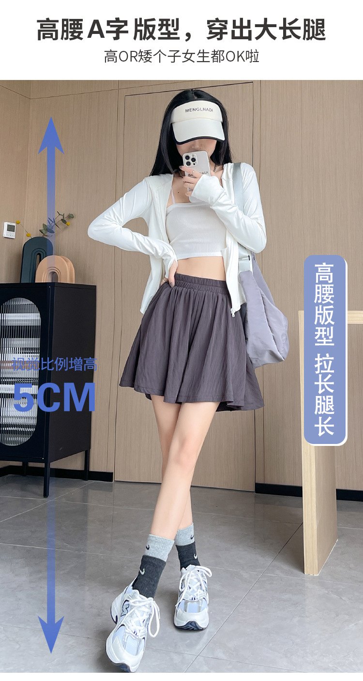 야마모토 빠른 건조 스포츠 반바지 여자 여름 얇은 주름 치마 바지 높은 허리 모양의 5 개의 멋진 넓은 다리 바지 도매