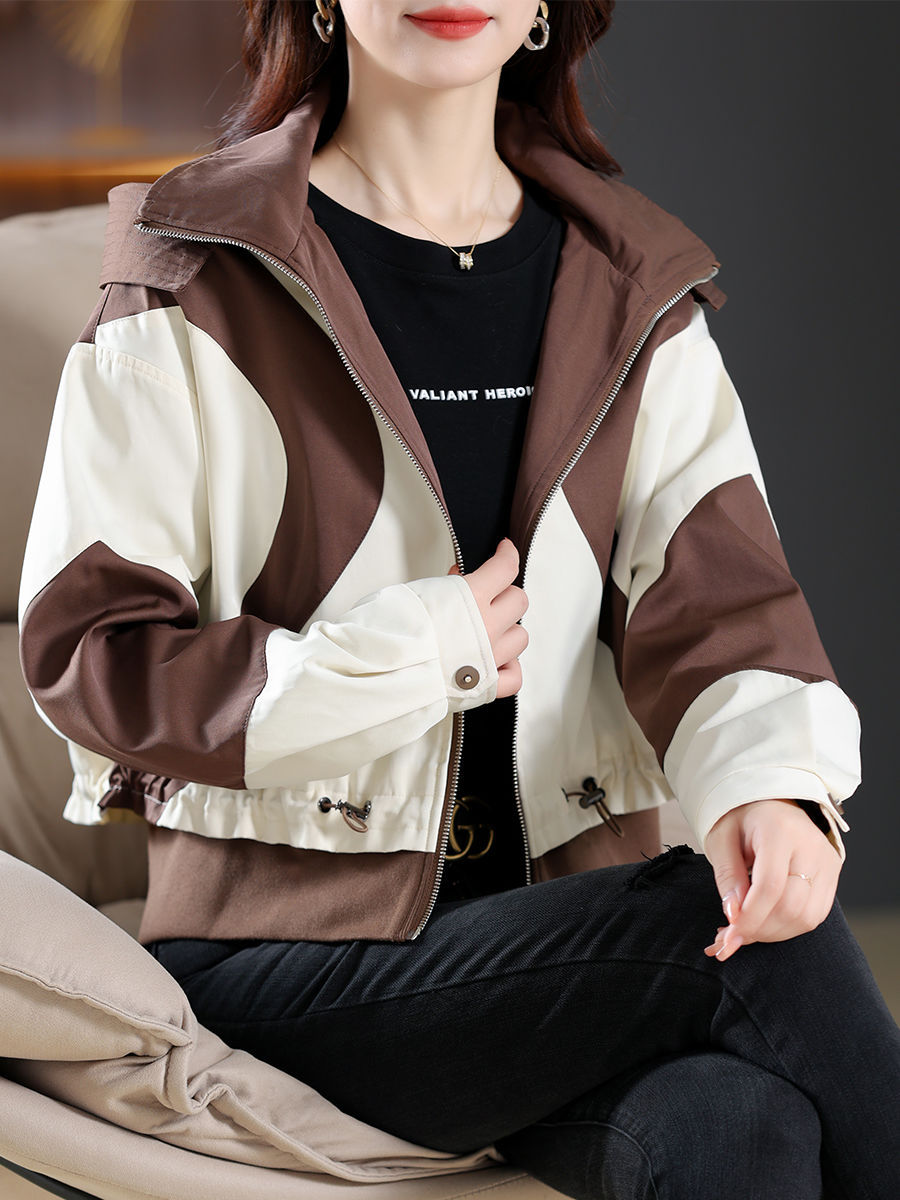 패션 콘트라스트 컬러 재킷 여성의 2024 년 봄과 가을 새로운 후드 칼라 쇼트 올 매치 디자인 센스 재킷스토어 가기