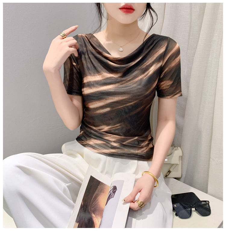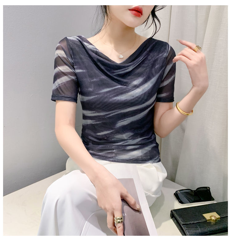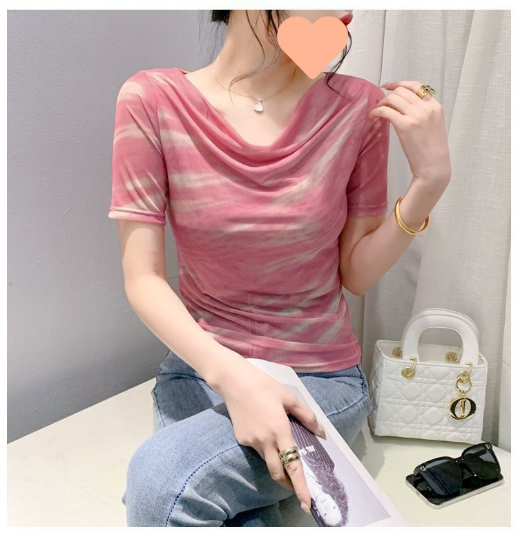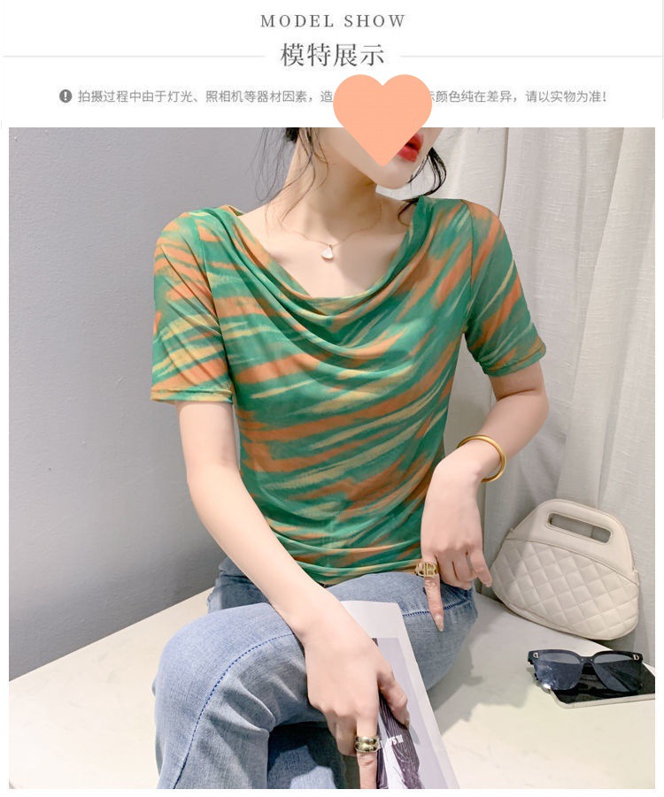 스윙 칼라 대조 컬러 그라디언트 아이스 실크 반팔 셔츠 여성의 2024 봄 새로운 컬러 매칭 패션 풀오버 베이스 셔츠 여성스토어 가기