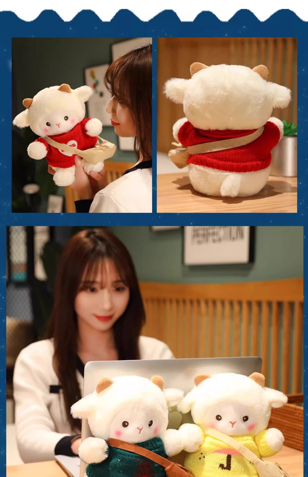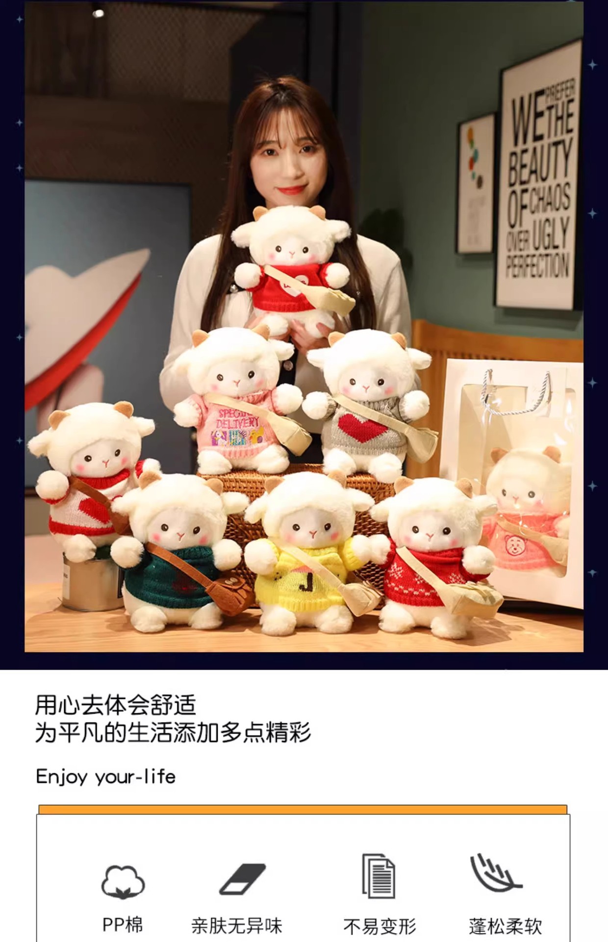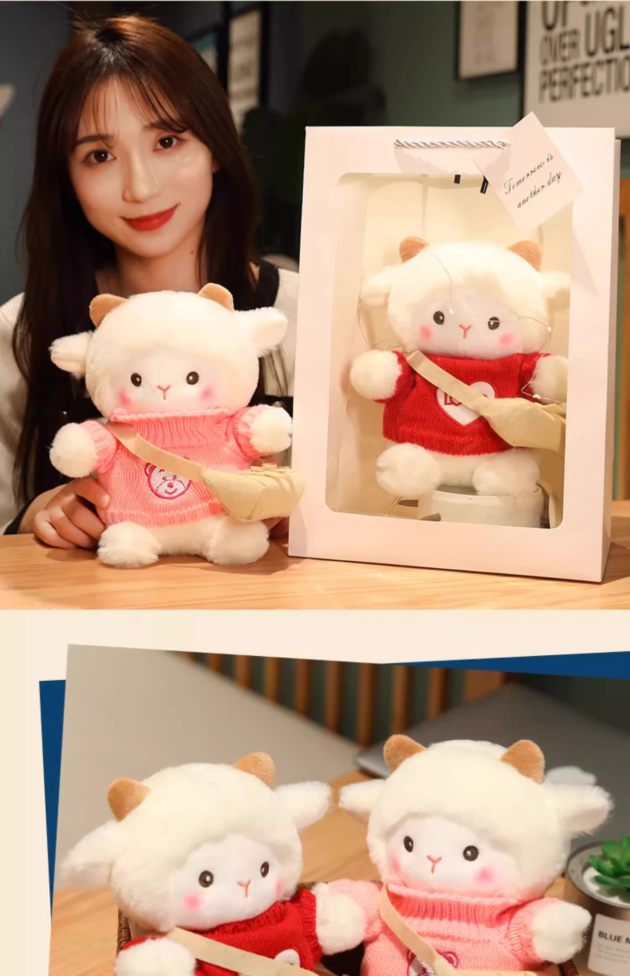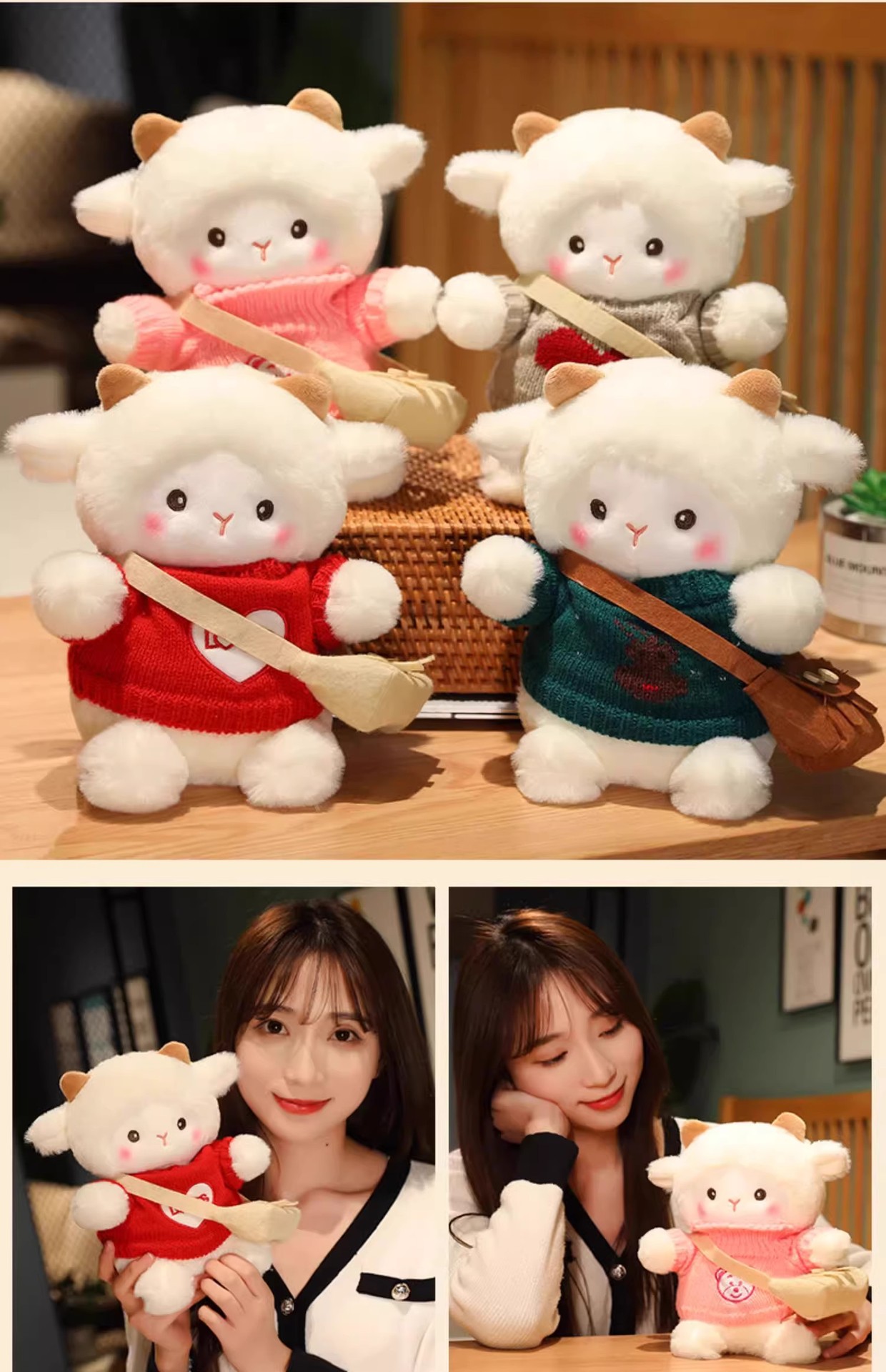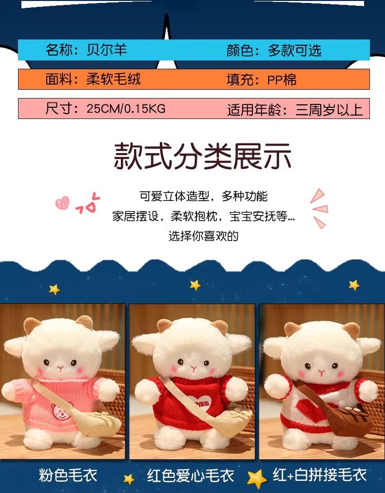 포케 양 인형 플러시 장난감 양 베개 인형 소녀를위한 발렌타인 데이 생일 선물 미니스토어 가기