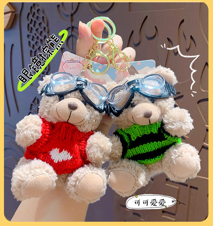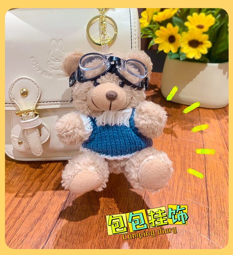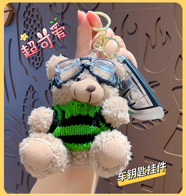 귀여운 트렌디 쿨 베어 봉제 인형 키 체인 여성 배낭 교수형 만화 가방 키 체인 펜던트 작은 선물