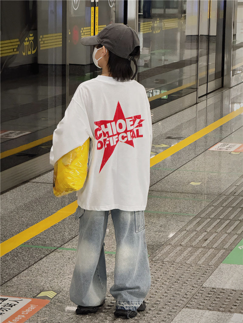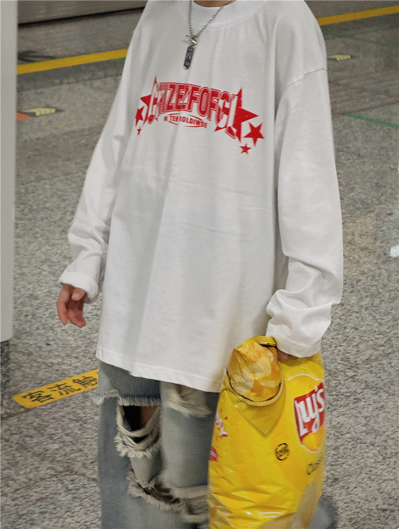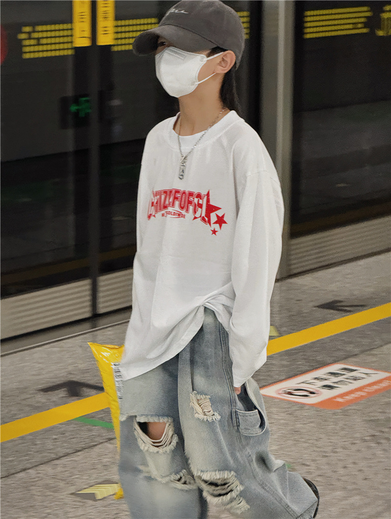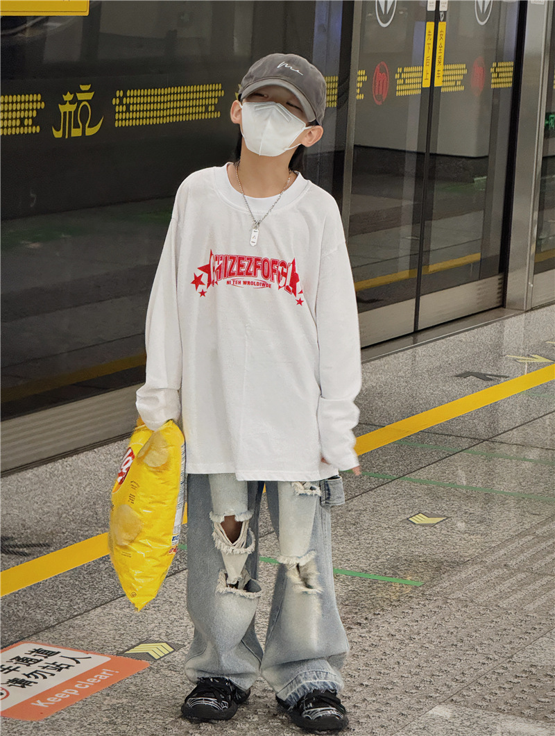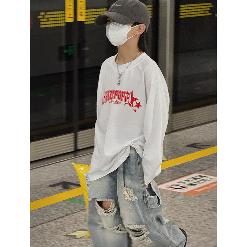 아동복 2024 봄과 가을 새로운 청소년 착용 한국 스타일 외국 스타일 인쇄 대형 어린이 티셔츠 베이스 셔츠스토어 가기