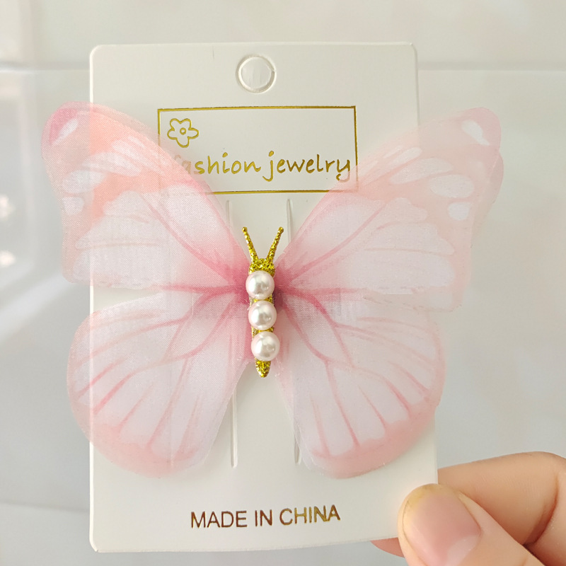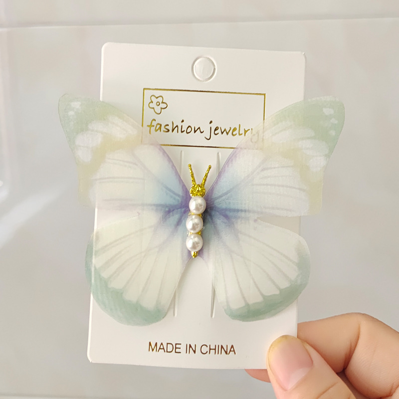 요정 스마트 거즈 나비 머리핀 여성 사진 모리 레트로 고급 사이드 클립 진주 기질 헤어 액세서리 도매스토어 가기