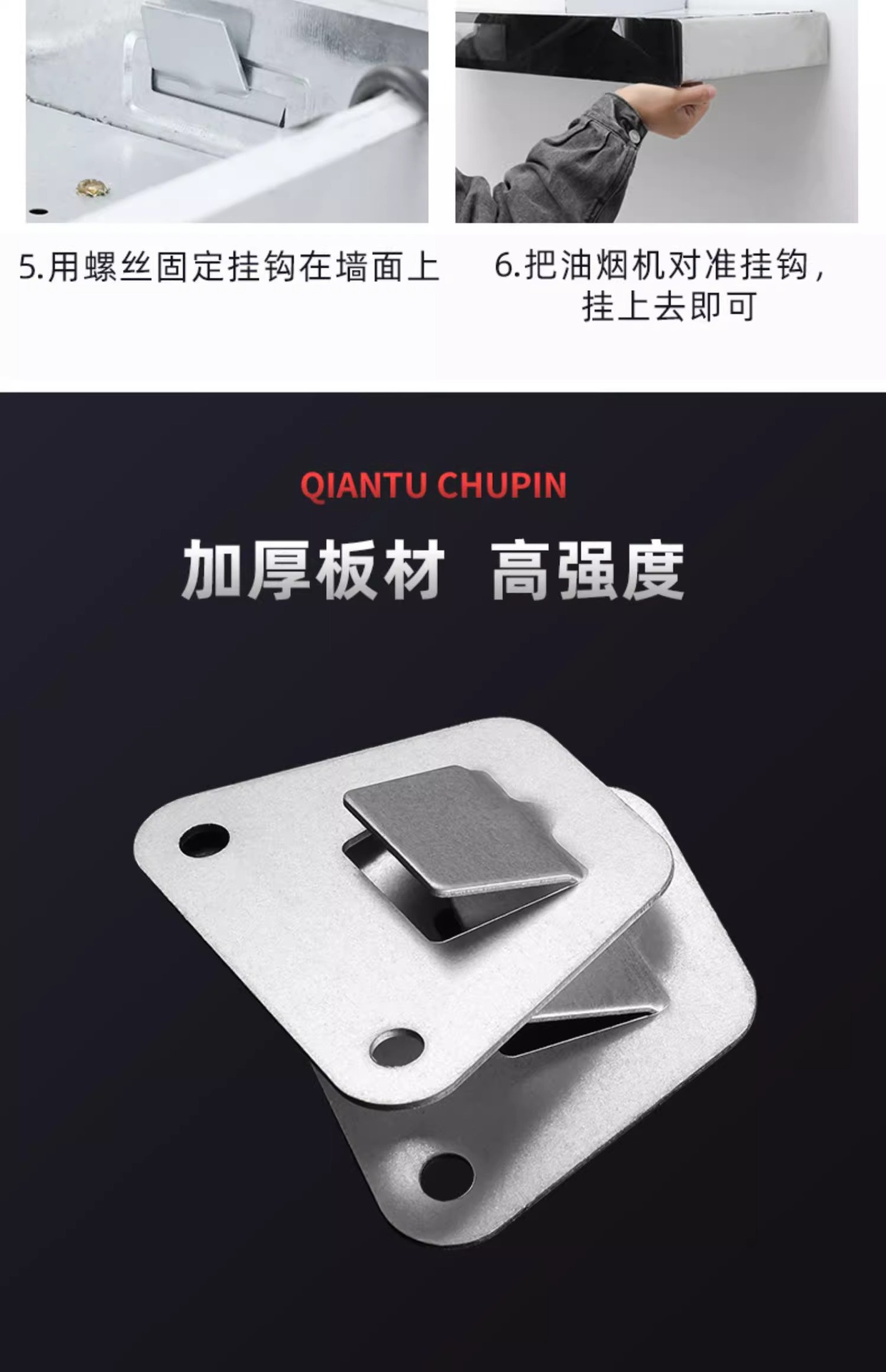 유럽 스타일의 사이드 흡입 범위 후드 교수형 플레이트 고강도 스탬핑 구조 스틸 후드 기계 유니버설 훅 걸이 플레이트 액세서리스토어 가기