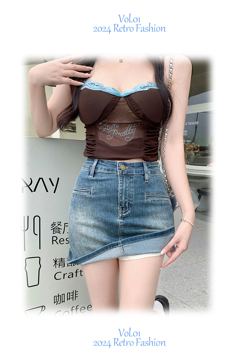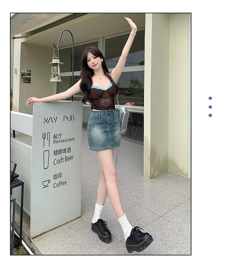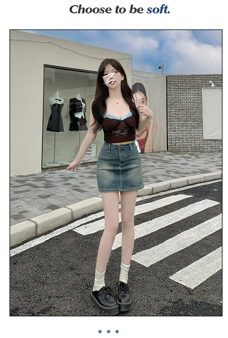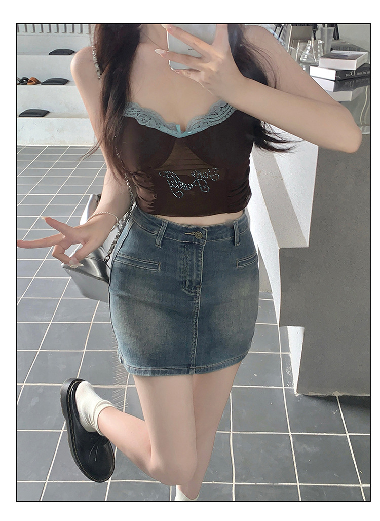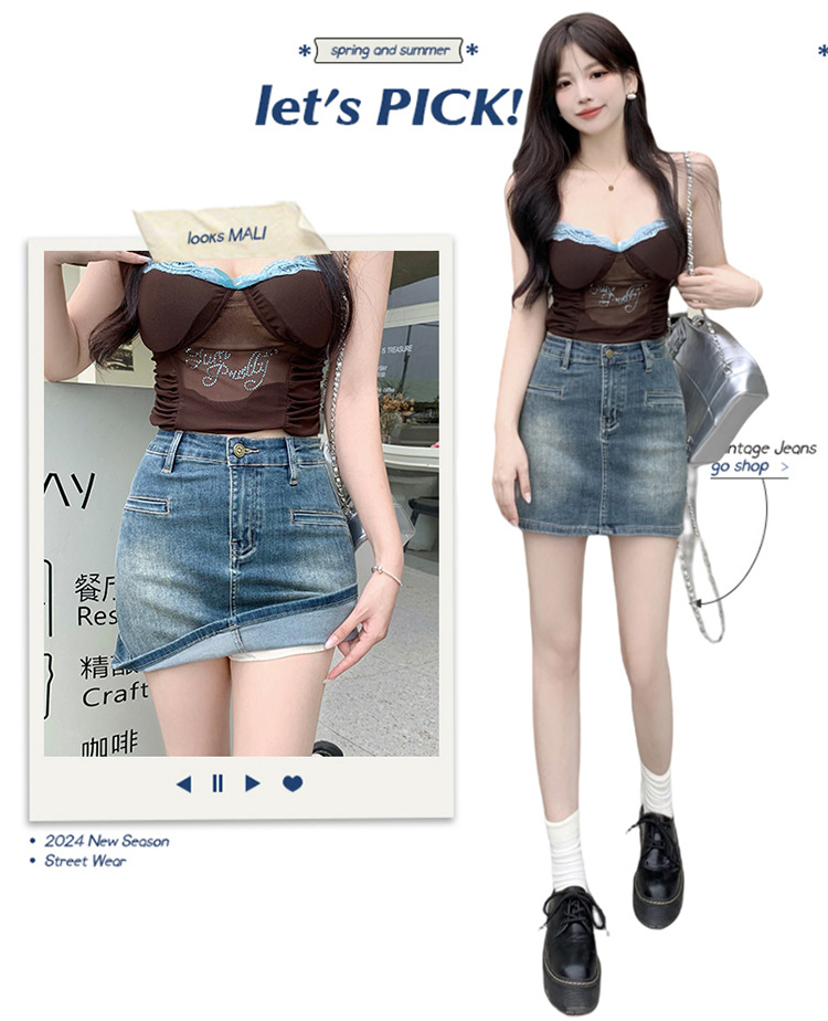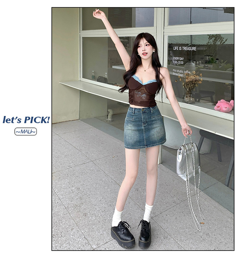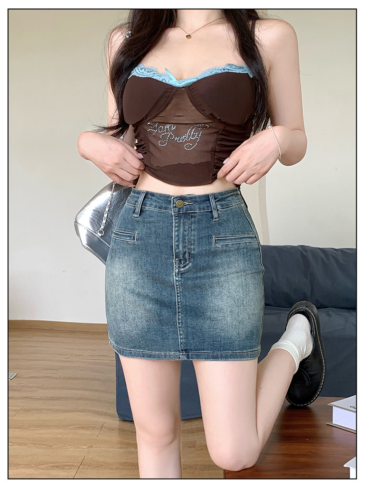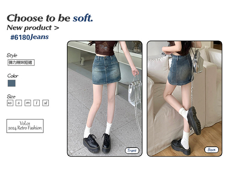 데님 짧은 치마 여자의 여름 얇은 2024 새로운 높은 허리 짧은 엉덩이 A-라인 탄성 뜨거운 소녀 치마스토어 가기