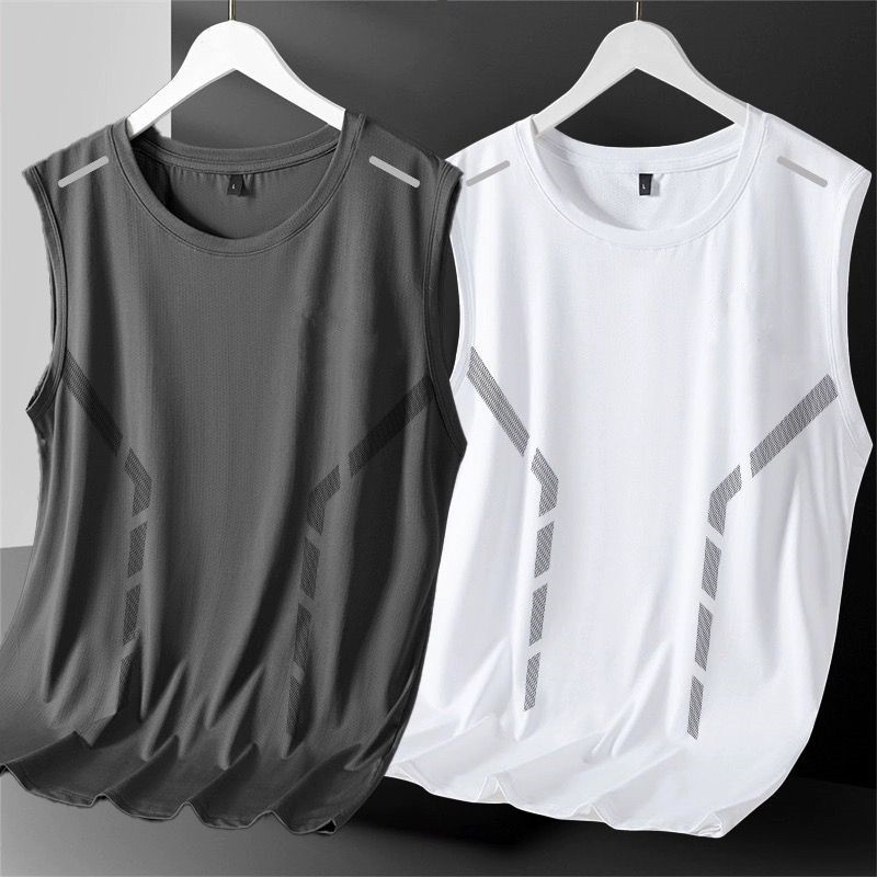 아이스 실크 빠른 건조 민소매 티셔츠 남성 여름 초박형 쿨 느낌 훈련 피트니스 러닝 보이즈 베이스 웨이스트 코트 조끼