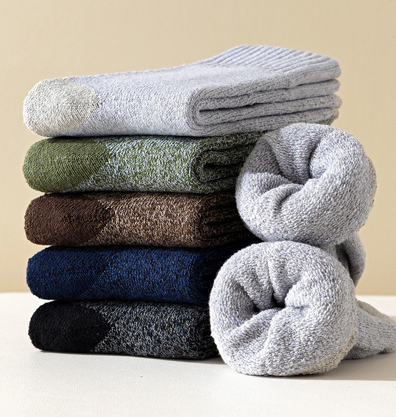 양말 남성 겨울 기모 두꺼운 따뜻한 수건 양말 남성 테리 양말 바닥 양말 야외 승무원 등산 양말