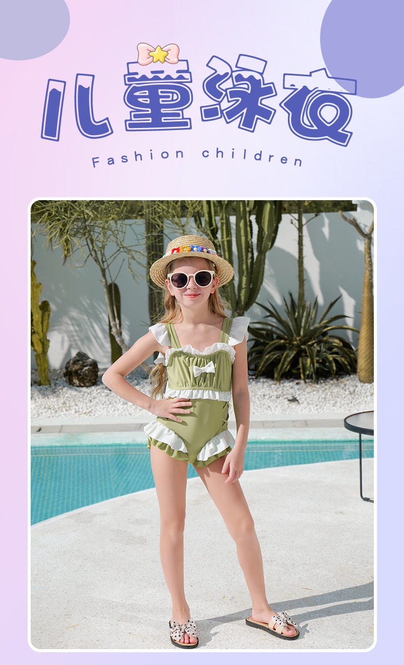 2024 소녀와 어린이를위한 새로운 수영복 온천 소녀와 학생 보수적 인 러플 소녀 수영복스토어 가기